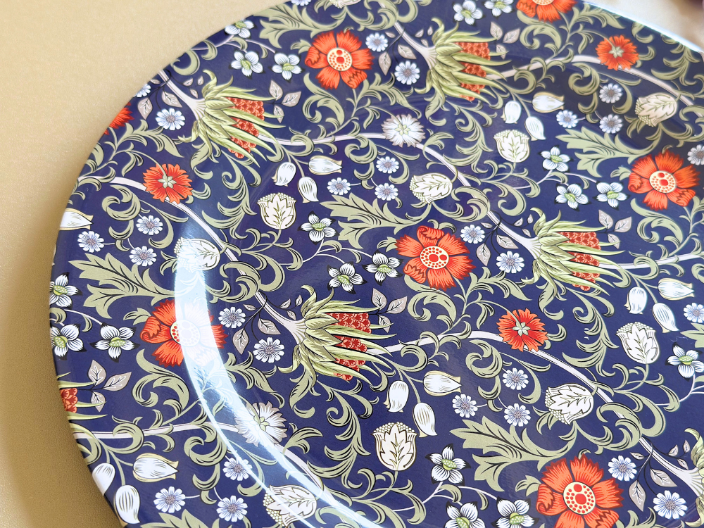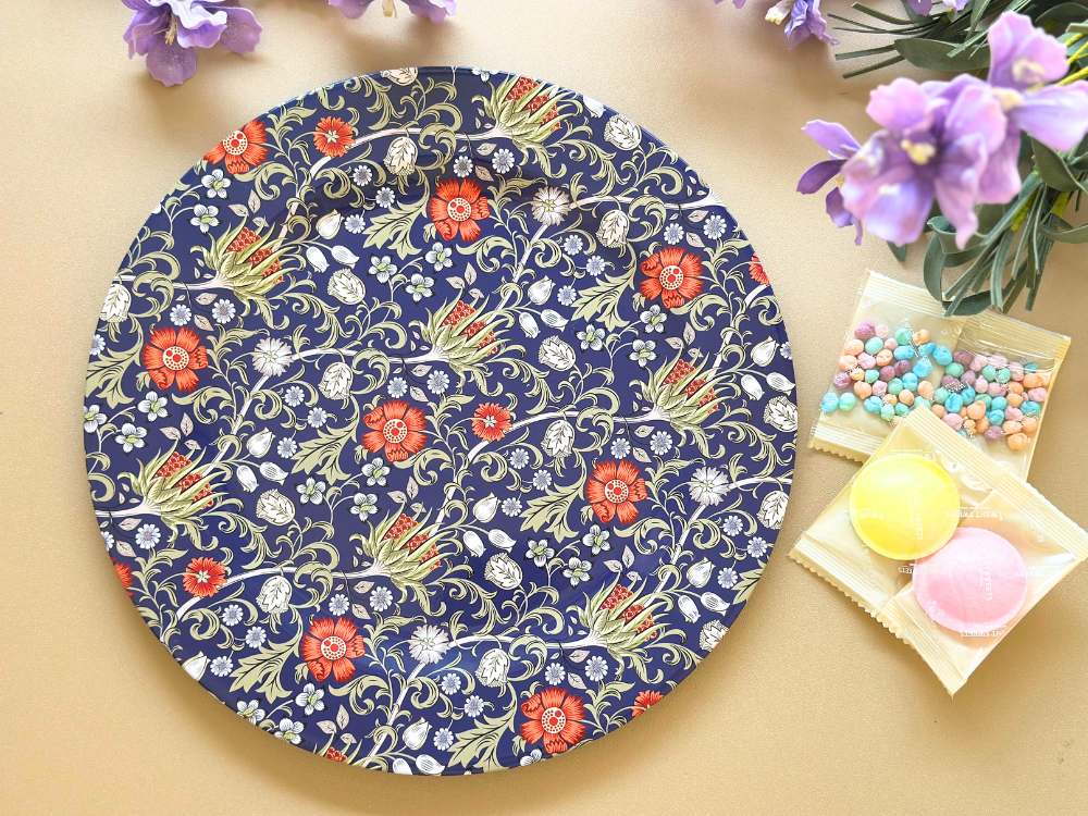盤面堅固耐用、易於清潔,適合擺放水果、麵包、點心或作為裝飾托盤,不論是日常使用或庭院下午茶都能彰顯品味。結合實用性與藝術風格,是送禮或提升居家質感的理想選擇。