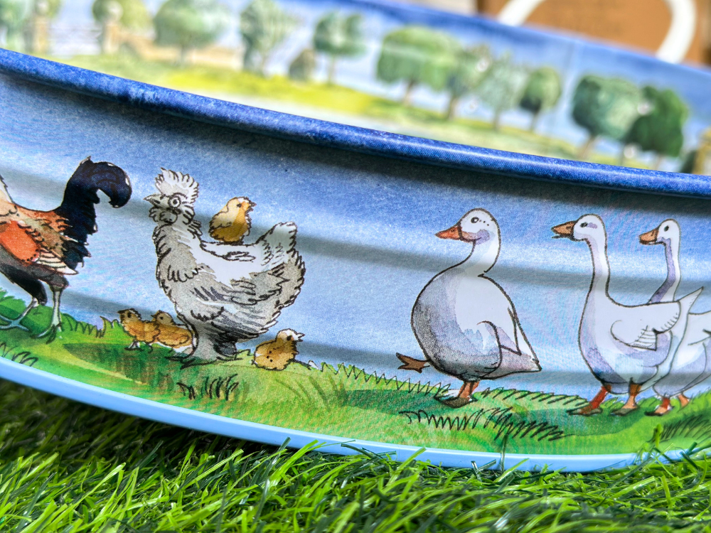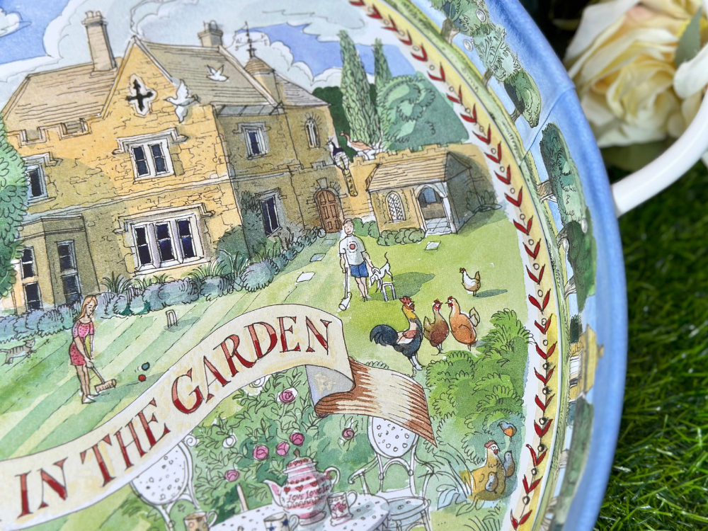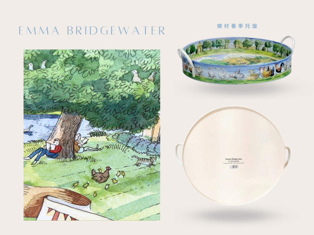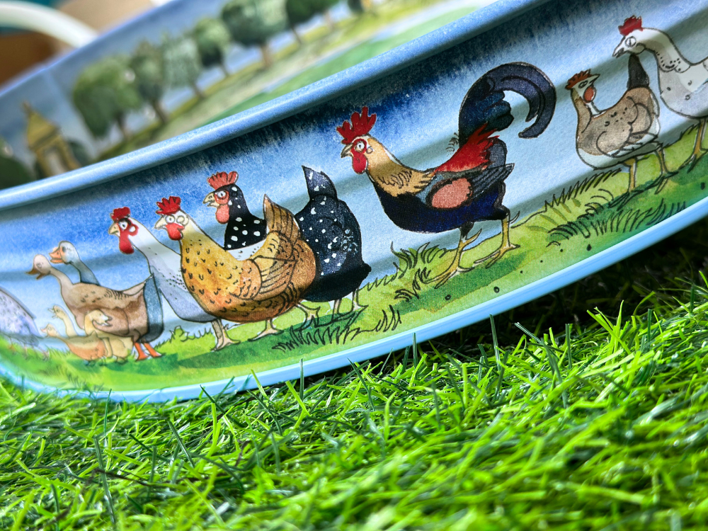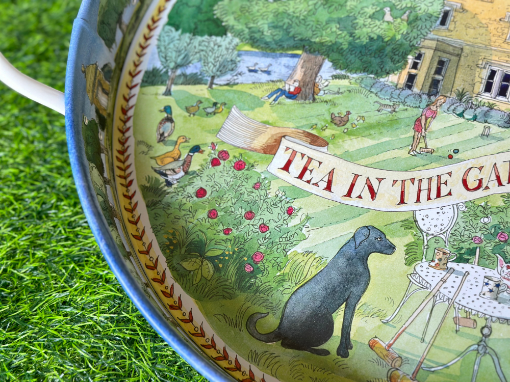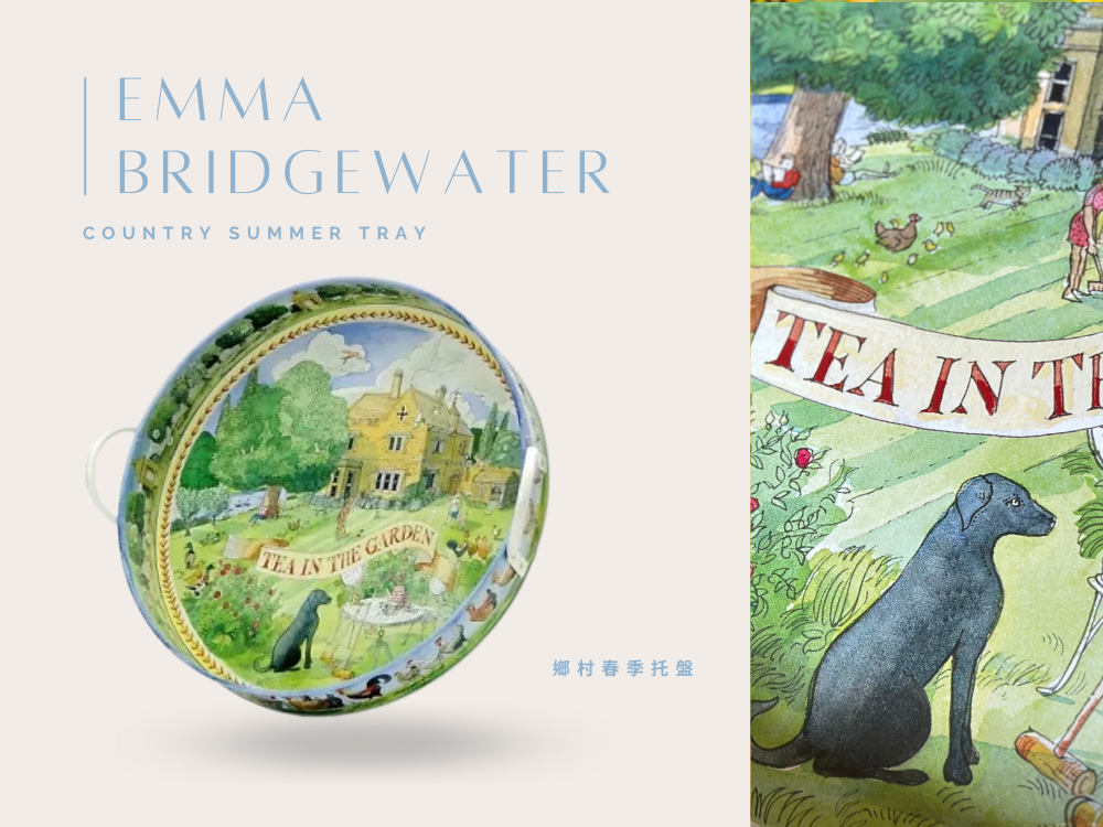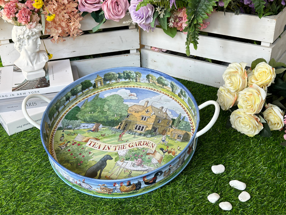 Country Summer Large Handle Tray 以英國鄉村夏日風景為靈感,描繪花園、果實與自然元素,色彩清新明亮,充滿悠閒氣息。