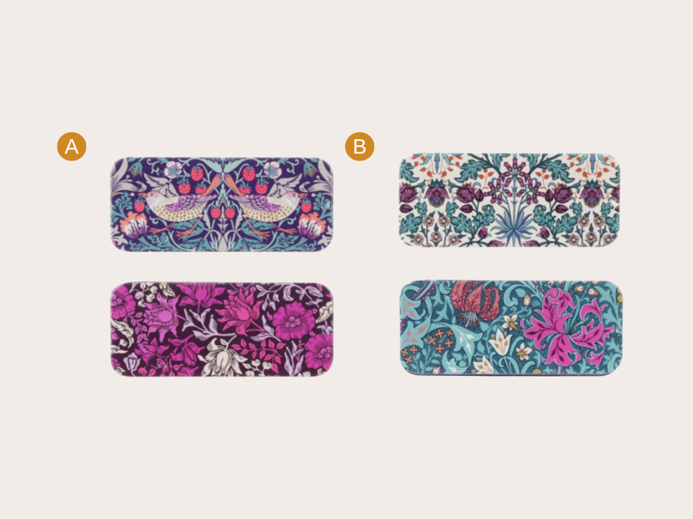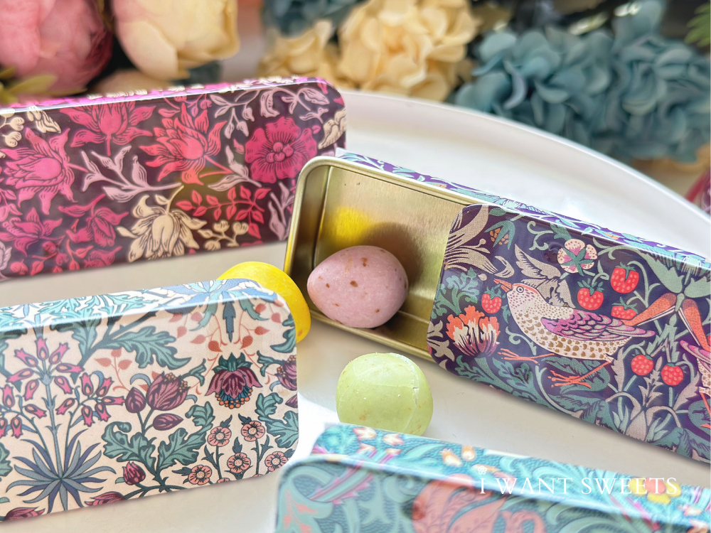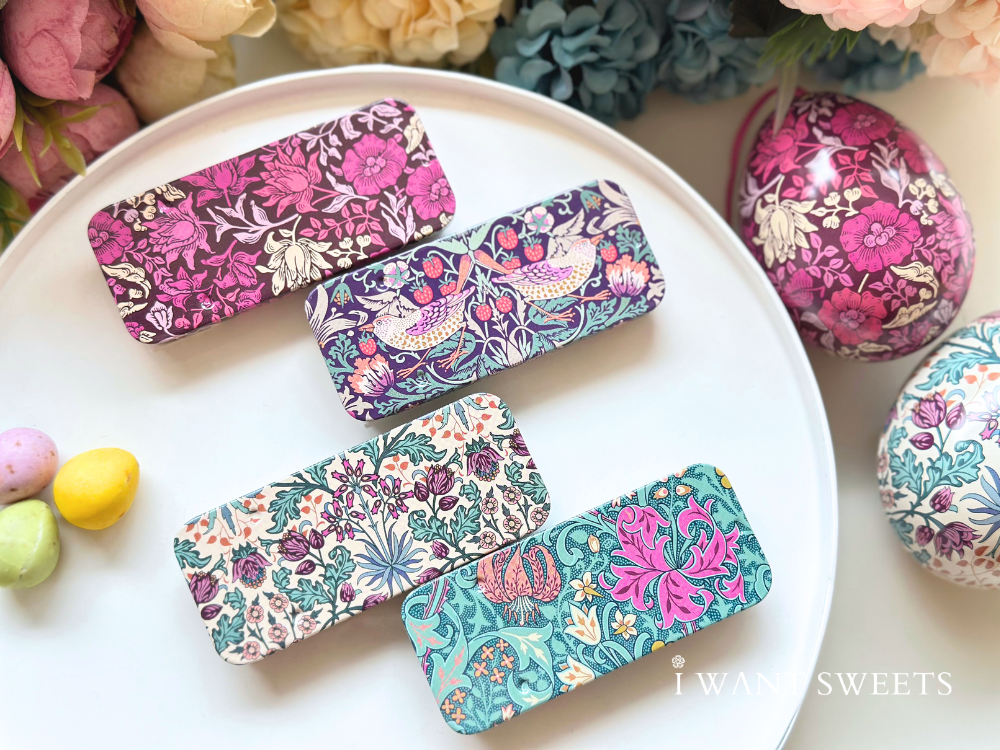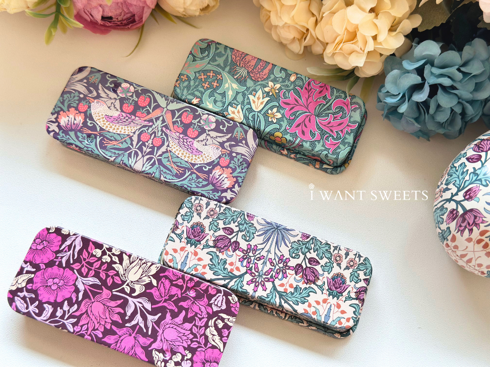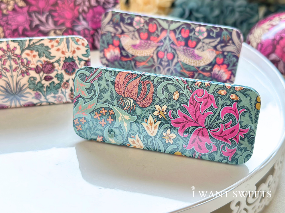 靈感源自英國設計大師 William Morris 經典花卉圖騰,紫韻風信子票卡以細膩筆觸呈現優雅浪漫,2款設計各具風情,適合書寫祝福或收藏。Mini Slider Tin 精巧滑蓋鐵盒,方便收納小物或糖果,兼具實用與美感,為日常增添一抹英式復古品味。