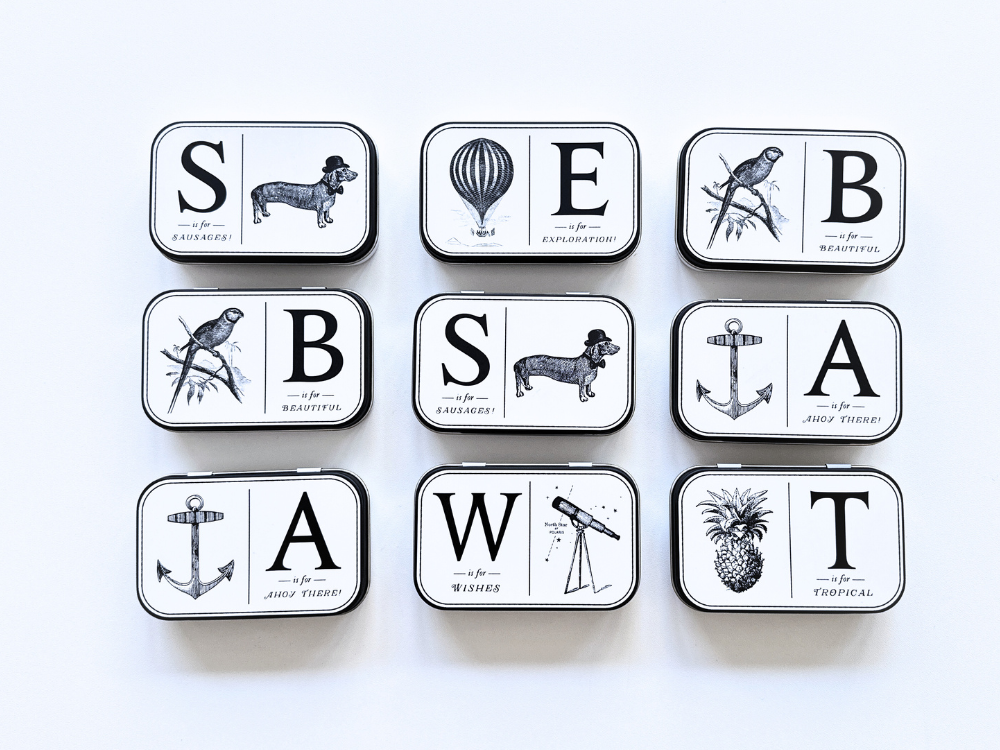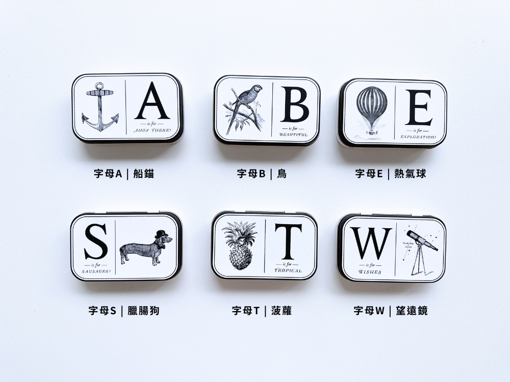 Alice Scott 字母口袋方盒展現了獨特的圖形美學,以極簡的黑白線條勾勒出精緻而充滿奇趣的字母系列彩繪,每款鐵盒皆搭配一個具備英式幽默與懷舊感的插畫組合,兼具功能性與設計感的鐵盒,無論是單獨陳列還是作為禮物贈予,都能彰顯獨特的時尚摩登個性。