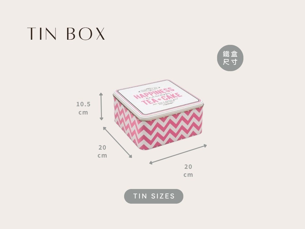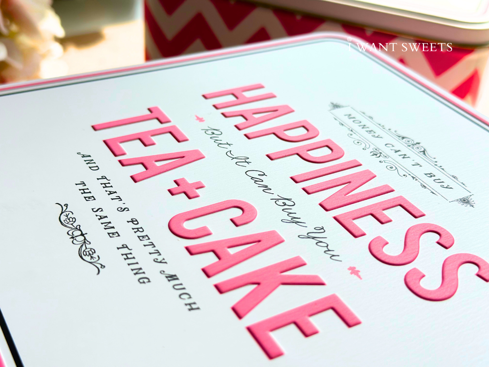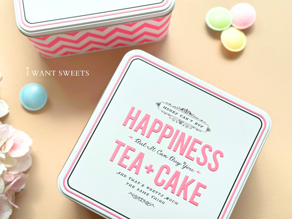 「Happiness Medium Square Tin」由插畫家 Alice Scott 操刀設計,以明亮的白底搭配粉紅圖樣設計,輕快的色彩與文字傳遞愉悅氛圍,如午後的茶時光般甜美可愛。