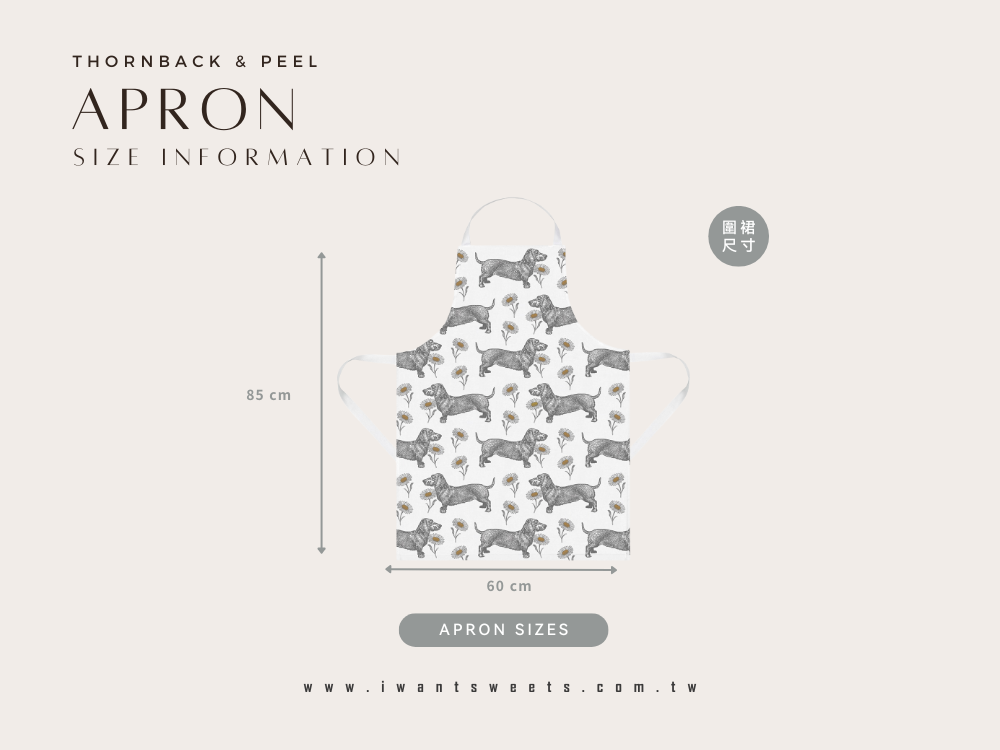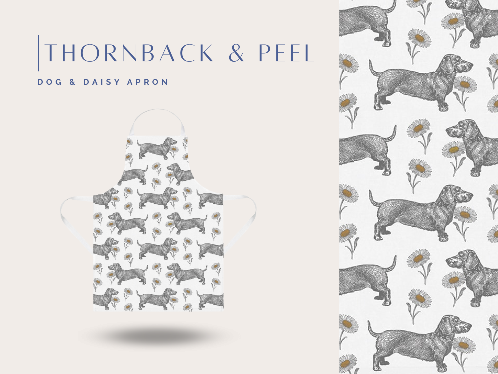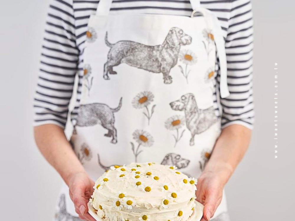 來自英國倫敦設計品牌 Thornback & Peel,這款圍裙結合最受歡迎的圖案之一 —— 憨萌臘腸狗與搖曳雛菊,色彩柔和、構圖活潑,完美詮釋英式鄉村生活的趣味與美感。
