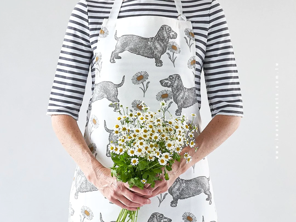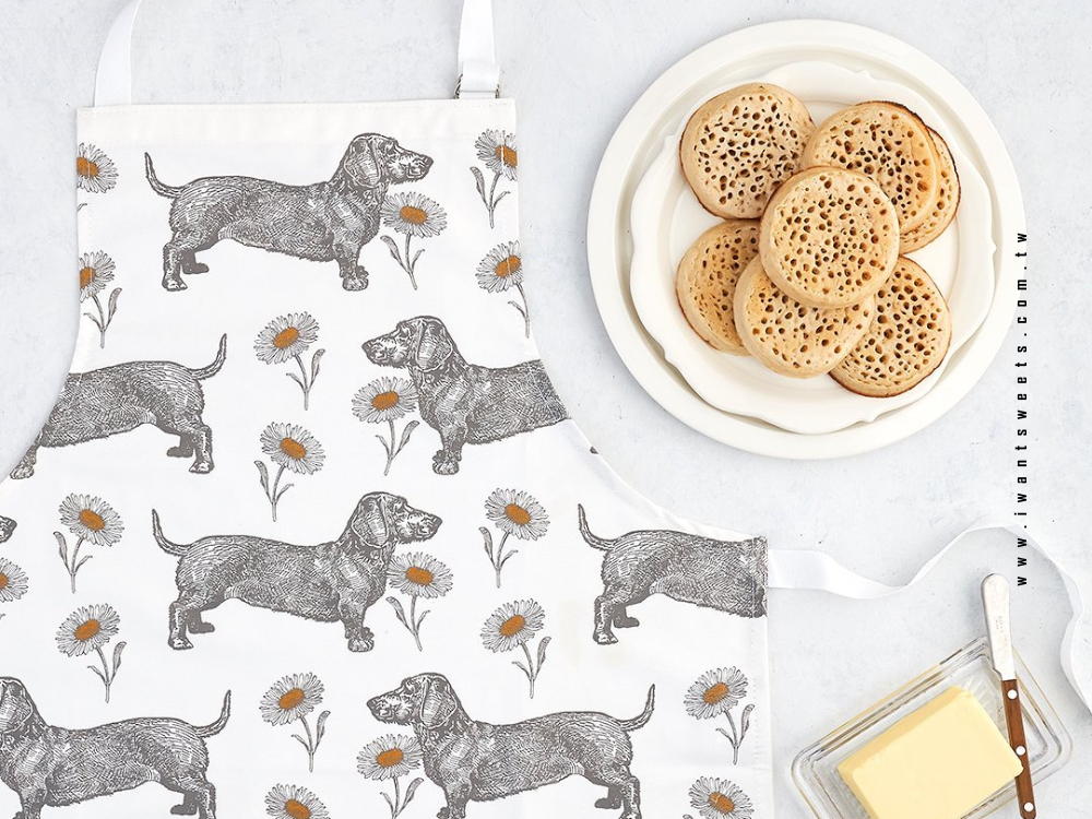 臘腸狗穿梭花叢間,英倫的可愛與幽默就藏在這件圍裙裡!