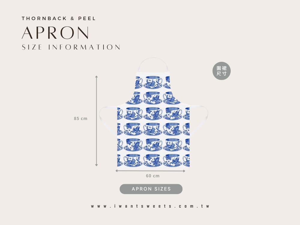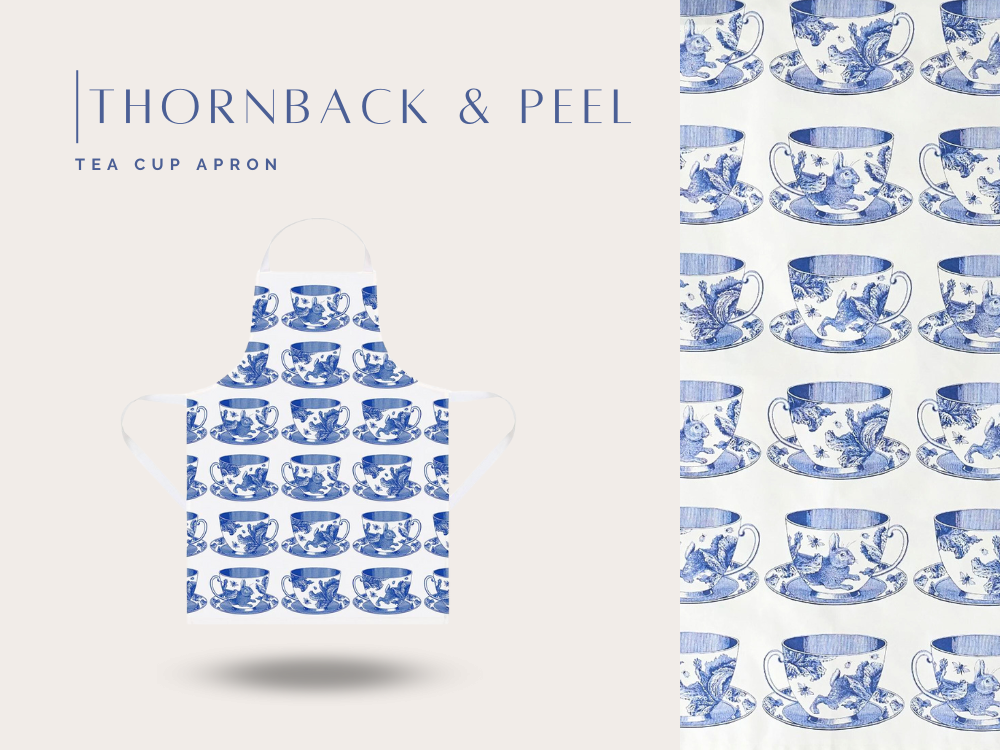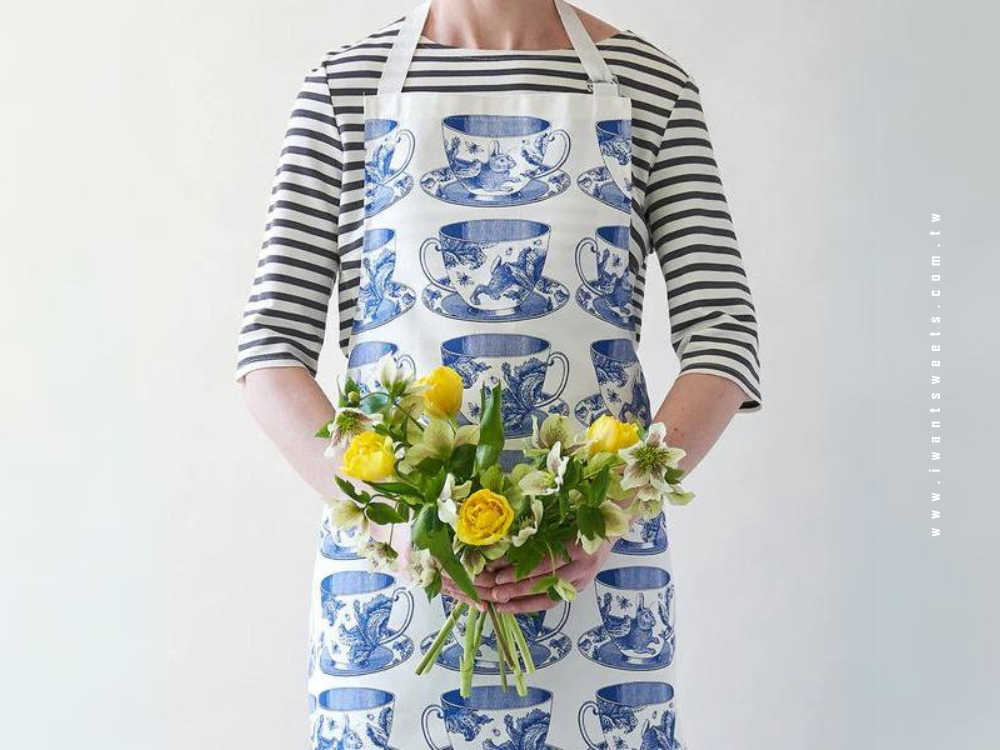來自倫敦設計品牌 Thornback & Peel,這款廚房圍裙以經典復古茶杯為主題,排版精緻、色調柔和,展現品牌一貫的英倫趣味與藝術感。設計靈感來自維多利亞時代的手繪風格,將日常茶具化為充滿韻味的圖騰,為廚房增添優雅氣息。