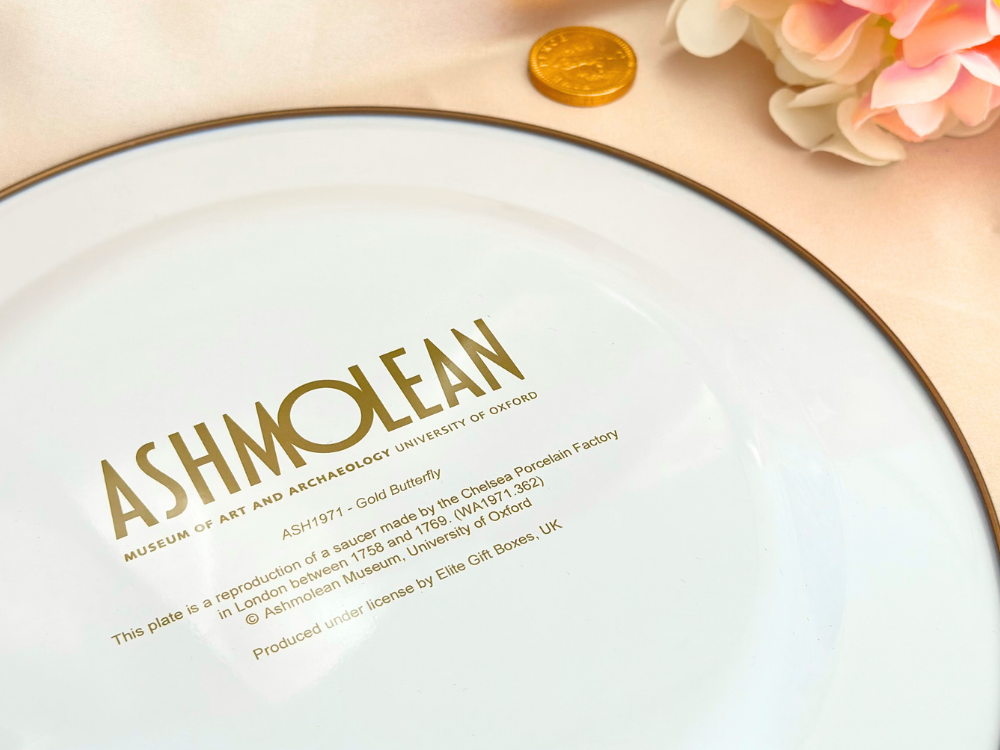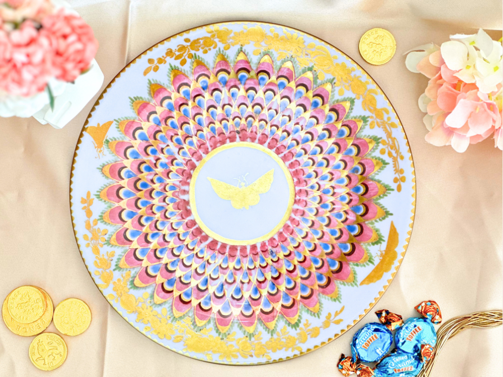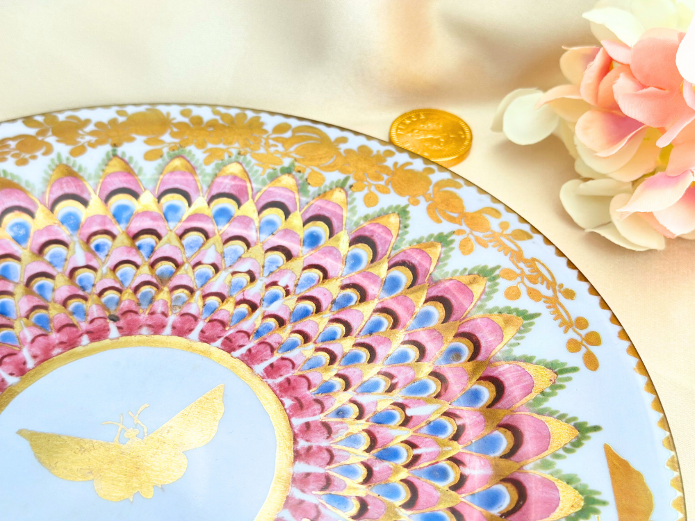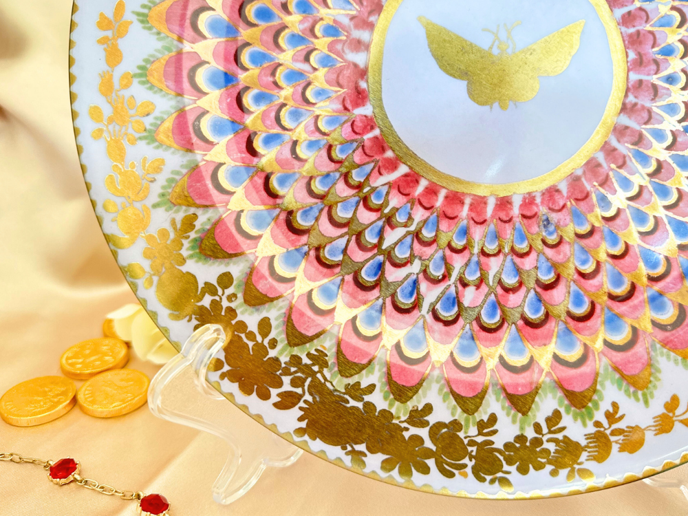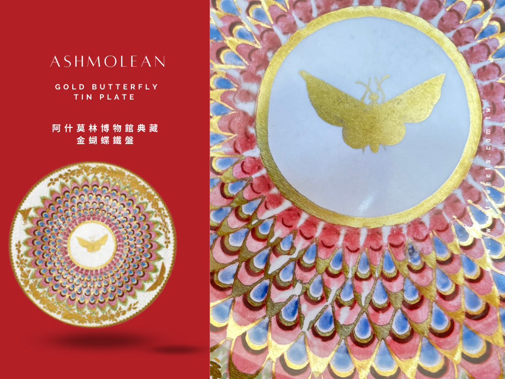 盤面上金色蝴蝶在精緻紋飾間翩然飛舞,搭配典雅的色調,散發出古典藝術的華麗氣息。
