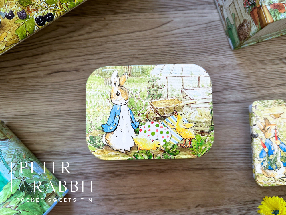 把春天的故事藏進小小的口袋方盒裡!盒身以經典的彼得兔復古插畫點綴,溫暖細膩,彷彿走進英國鄉間的童話花園。