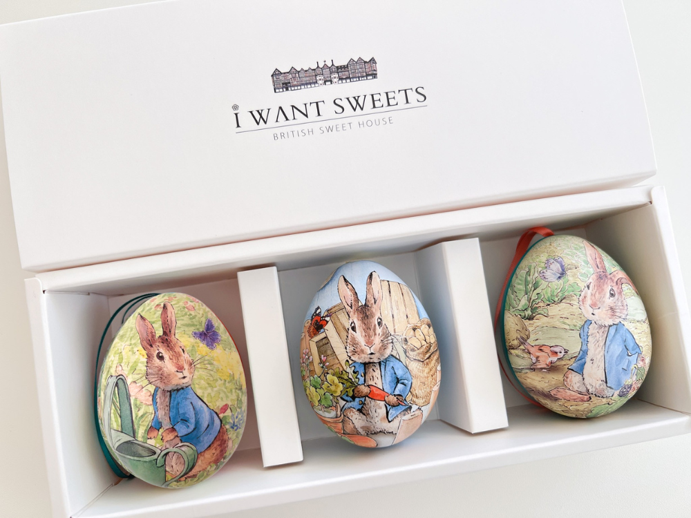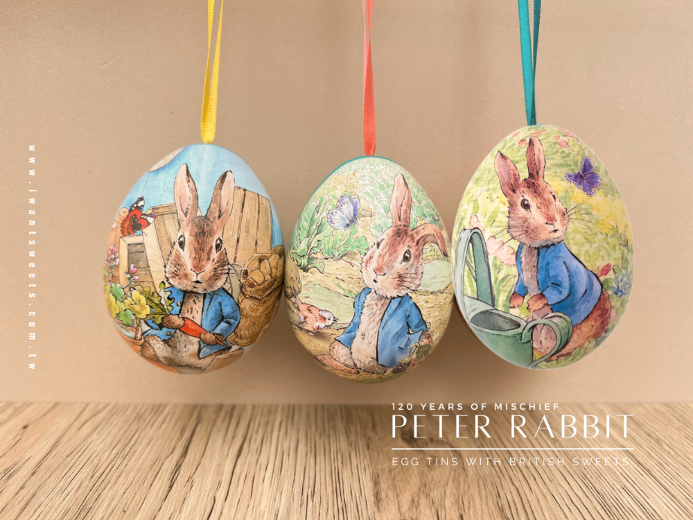 以彼得兔與花園彩蛋為主角,圖案細緻優雅,盒身小巧可愛,經典童話角色 × 英國進口糖果,一盒藏進春天與童心。