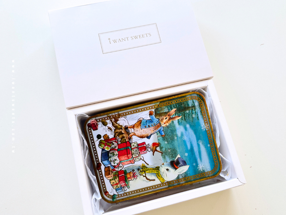 聖誕彼得兔長方鐵盒以經典比得兔為主角,呈現溫馨童趣的冬日場景。細緻的插畫結合柔和聖誕色調,展現英倫風的典雅與節慶氛圍。可作為收藏鐵盒、收納小物或節日贈禮包裝,無論擺設或實用都充滿故事感與溫度,是聖誕季節最療癒的小確幸。