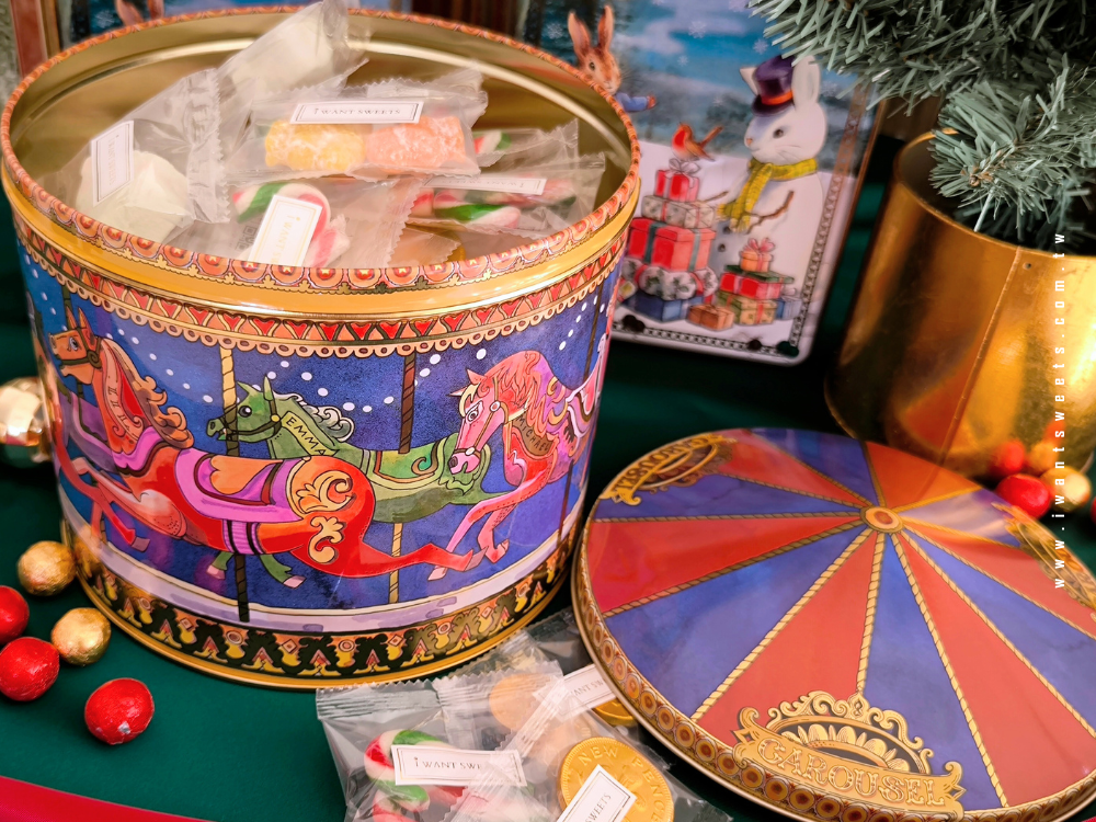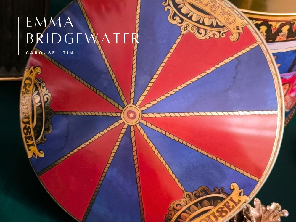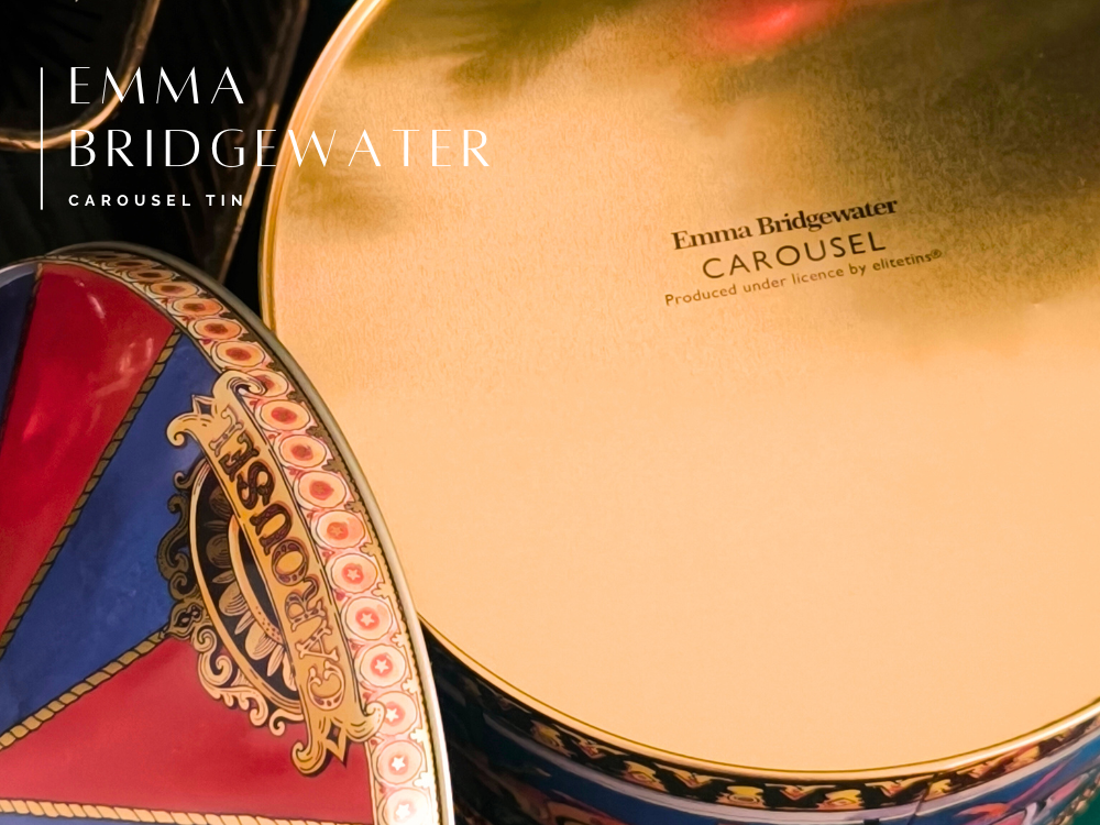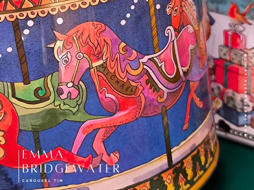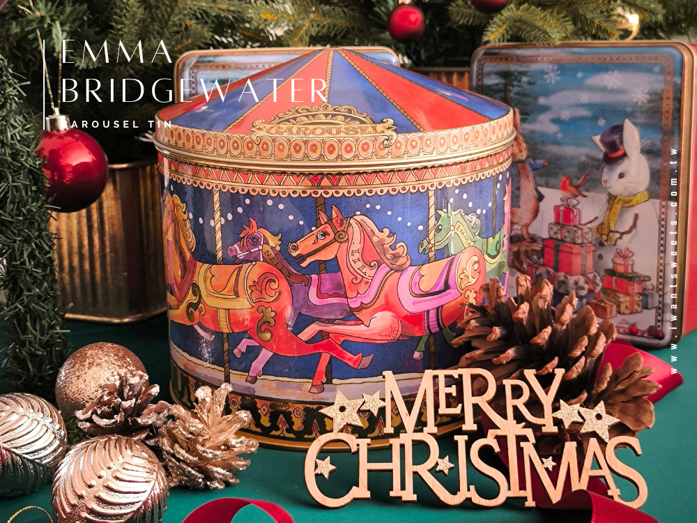 來自英國設計品牌 Emma Bridgewater 的聖誕限定糖果桶,以歡樂的 旋轉木馬 為主題設計,復古插畫風格搭配溫暖紅綠色調,洋溢著節日集市般的熱鬧氛圍。