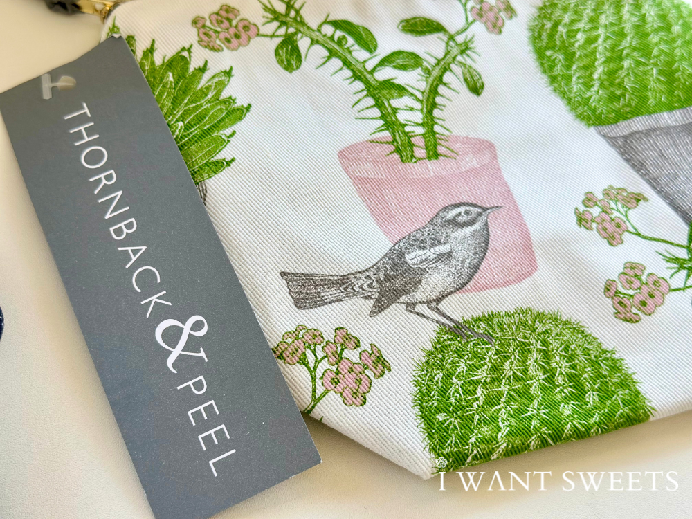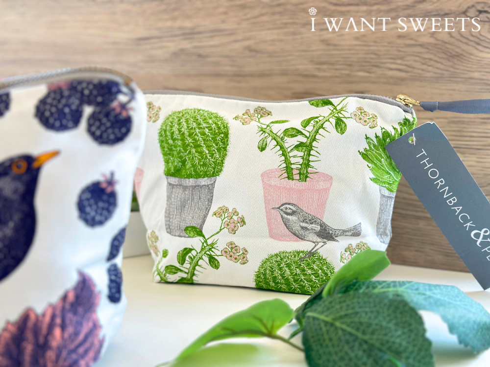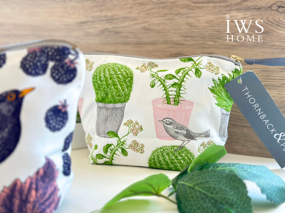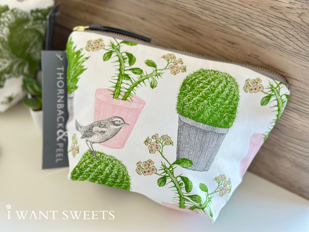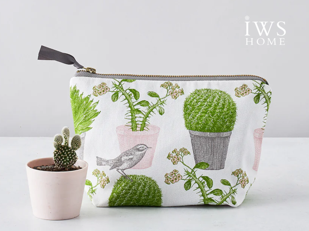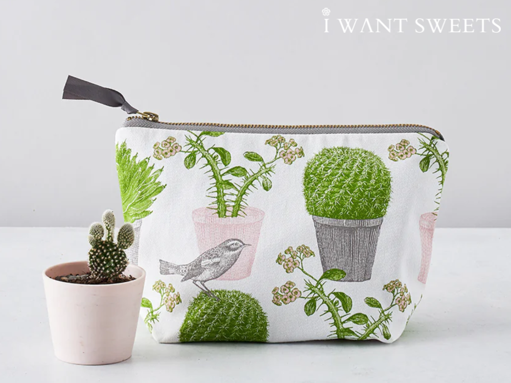Thornback & Peel 小化妝包 – 仙人掌與鳥 (Cactus & Bird Cosmetic Bag),充滿異國情調與藝術感。
