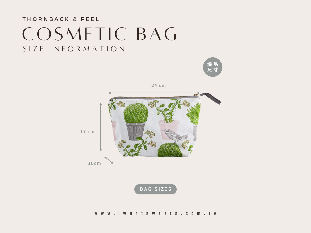 設計靈感來自沙漠植物的堅韌生命力與鳥類的靈動姿態,插畫將仙人掌與小鳥交織,營造出自然與生機並存的景象。以絲網印刷工藝呈現細膩線條與鮮明對比,讓這款小化妝包兼具清新與獨特的美感。