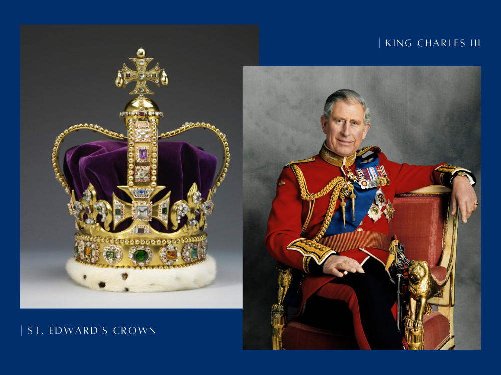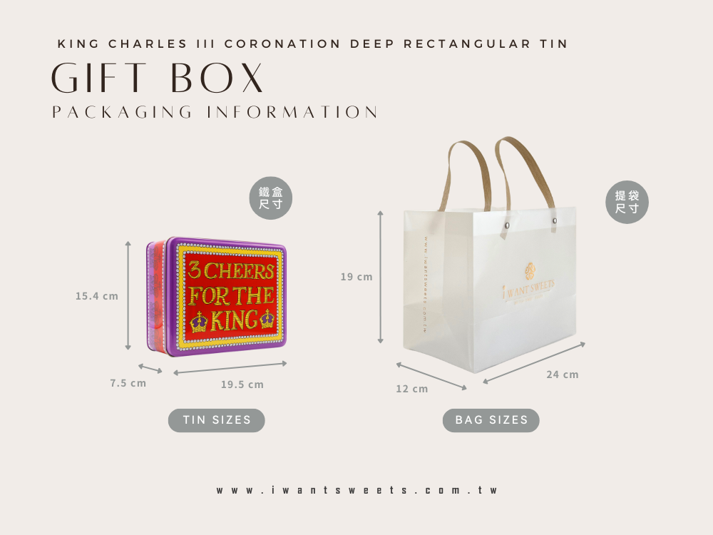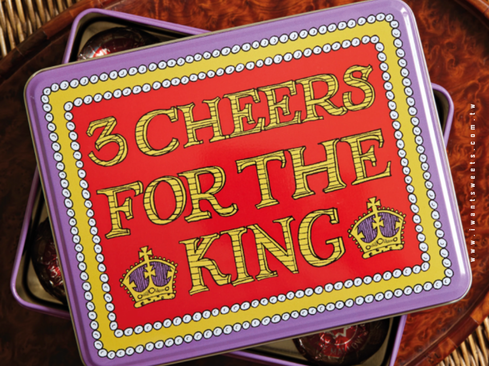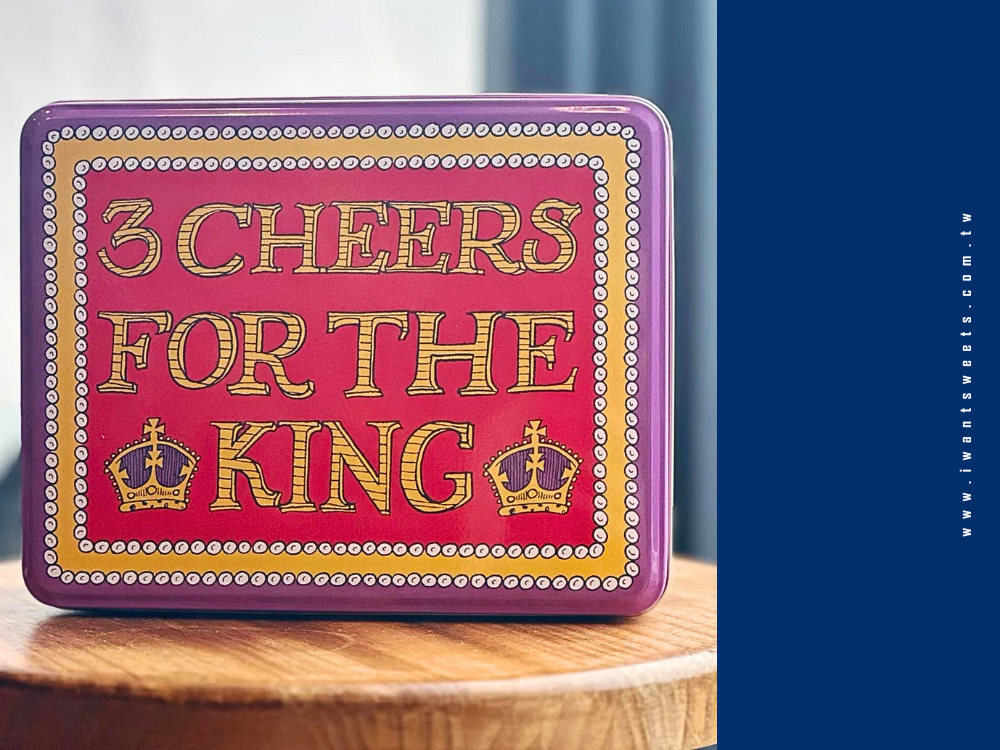 盒身以細膩的手繪圖騰環繞,融入典雅的花環與皇家象徵,讓整體造型既莊重又不失溫暖。正中央醒目的「King Charles III Coronation」字樣,凸顯這段歷史時刻的尊貴與獨特。