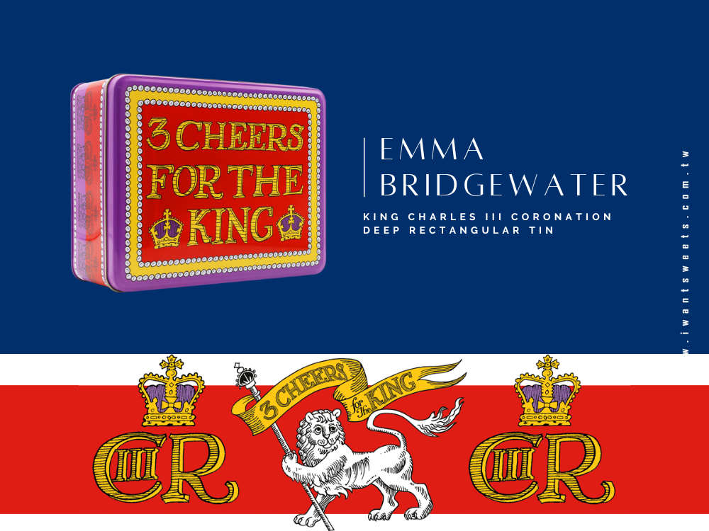 為慶祝英國查爾斯三世加冕盛典,Emma Bridgewater 特別打造這款紀念大方盒。鐵盒設計以象徵皇室的經典藍紅配色為主調,搭配皇冠、徽章與金色細節,傳遞出濃厚的王室氛圍。