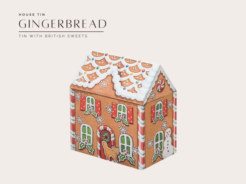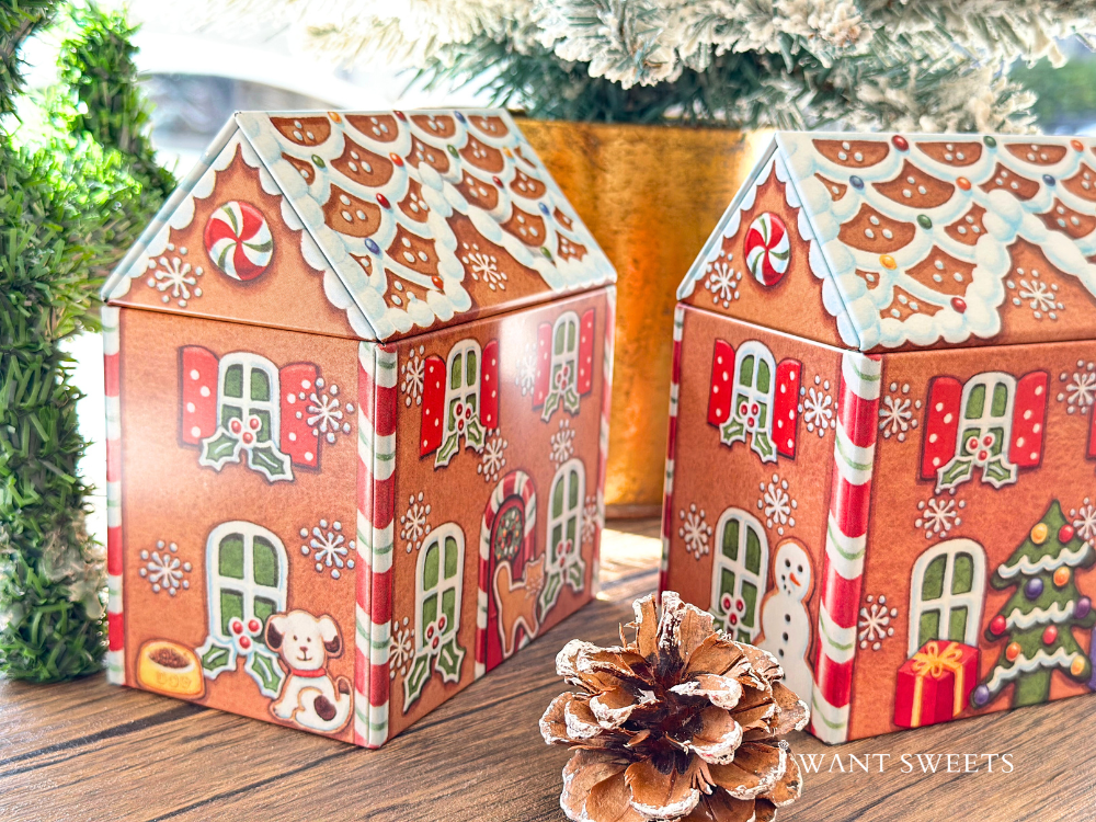歡迎光臨童話裡的聖誕小屋!由英國插畫家 Dana Kubick 設計的薑餅屋鐵盒,以紅白拐杖糖為主題,搭配溫馨可愛的聖誕裝飾,營造出宛如童話般的夢幻氛圍。
