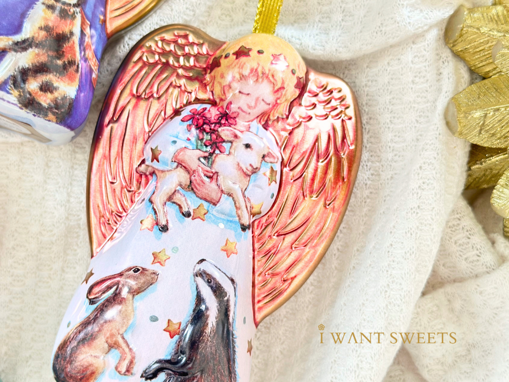 英國插畫家 Dana Kubick 以樂趣童真的筆觸描繪溫柔的小天使,充滿節日的溫暖與祝福感。圓潤的彩球鐵盒設計靈感來自傳統聖誕吊飾,內藏英國經典糖果,開啟時彷彿揭開甜蜜驚喜。無論懸掛於聖誕樹上、作為交換禮物或節慶收藏,都能為冬日增添一抹英倫的夢幻童話氣息。