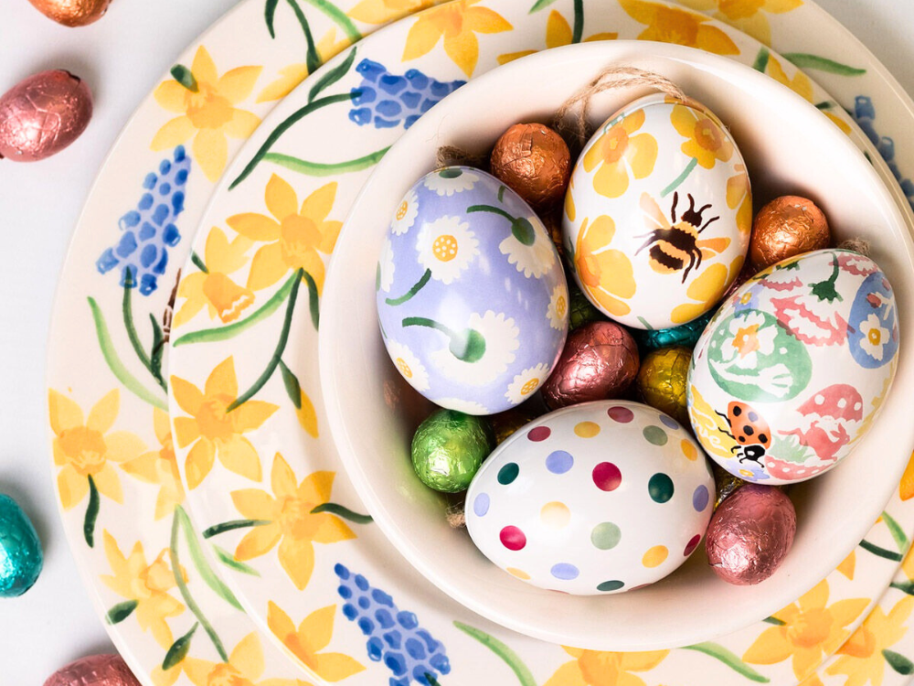 以英國經典陶瓷品牌 Emma Bridgewater 的溫潤筆觸,描繪出春日田園裡的彩蛋與花草,一盒裝進童年回憶與手作溫度。