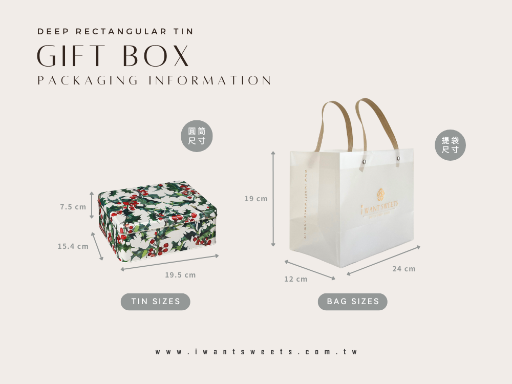 盒身以清新的綠葉交錯構圖,點綴鮮紅果實,彷彿一幅手繪聖誕插畫,洋溢自然與喜悅。