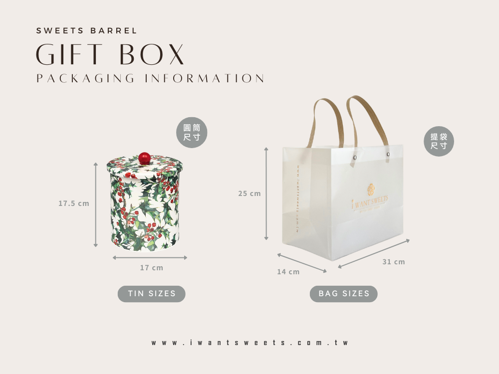 圓筒鐵盒設計簡約質感,內含英國進口糖果,甜中帶有聖誕的祝福。