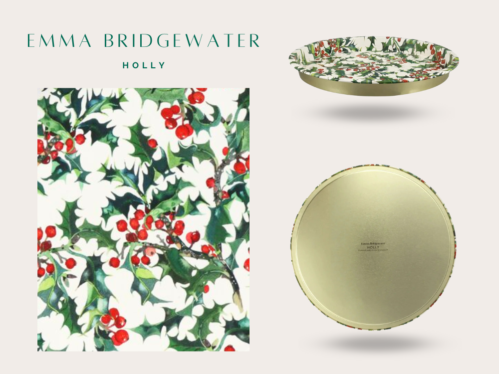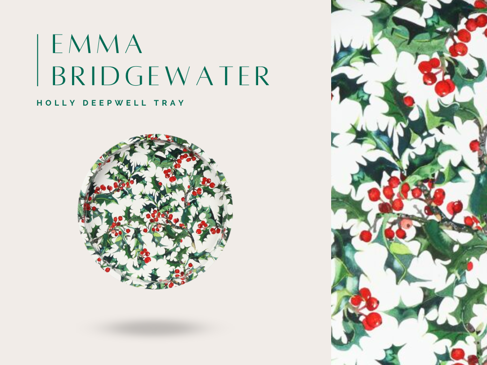Emma Bridgewater 經典聖誕圖騰——深綠冬青葉與紅色果實交織而成,象徵希望與長青,是英國傳統節慶中不可或缺的元素。