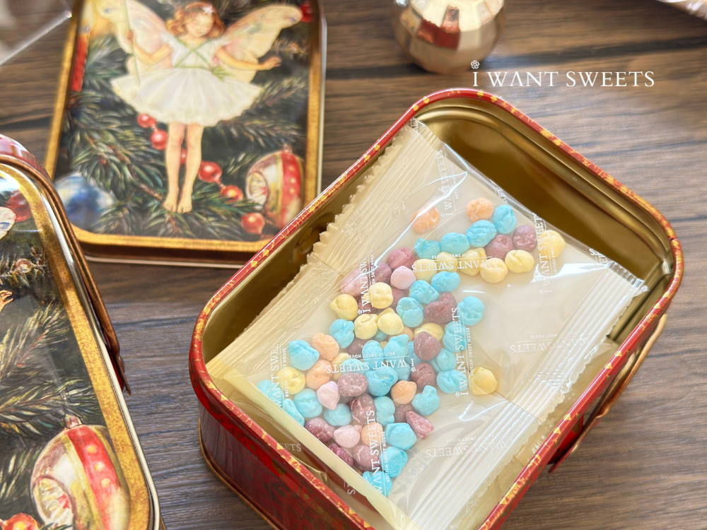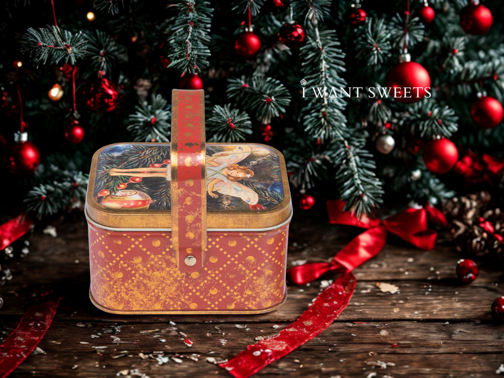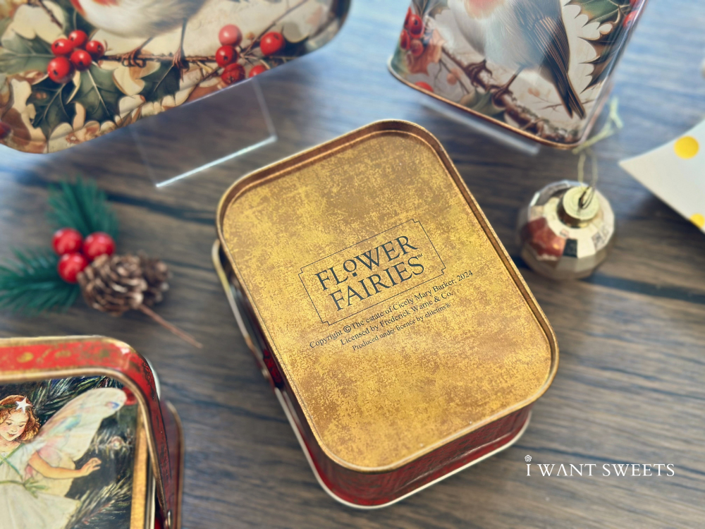 經典英國插畫家 Cicely Mary Barker 的「花仙子」圖樣為靈感,鐵盒呈現手提籃造型,飾以柔和草木綠與點綴金色星緒,展現節慶的童話氛圍。蓋上精緻花邊紋理,為每一個冬日時刻注入一份悠然與詩意。