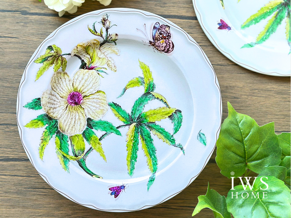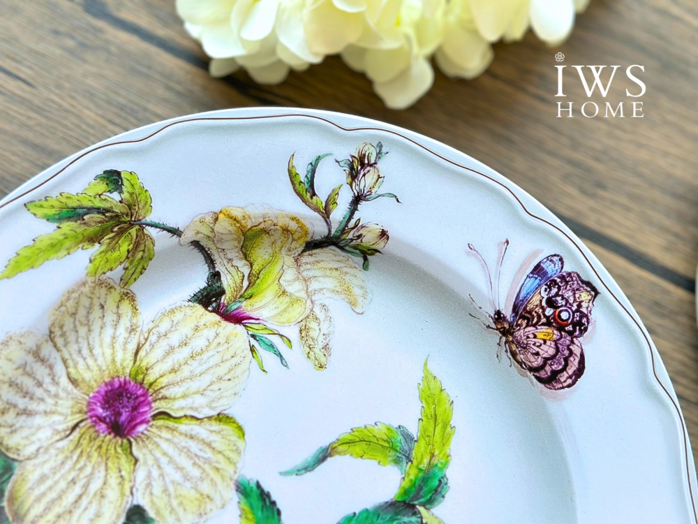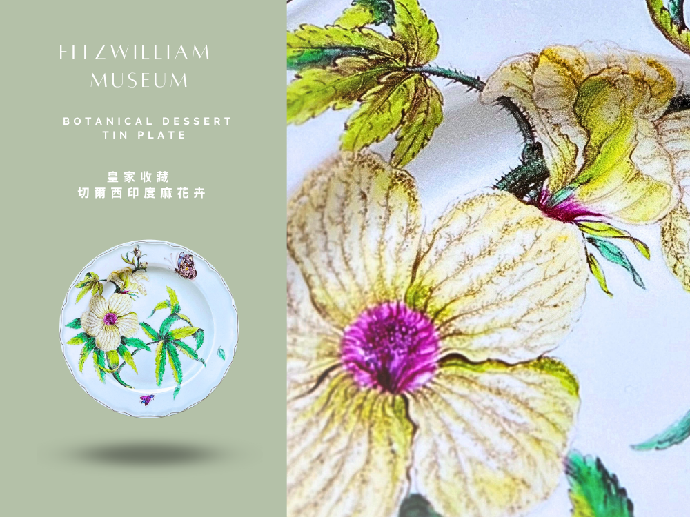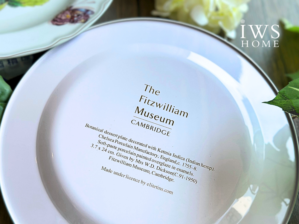 以英國劍橋大學費茲威廉博物館館藏為靈感,這款「切爾西印度麻花卉鐵盤」重現十八世紀切爾西瓷器的典雅風華。圖案取自植物畫家Ehret筆下的〈Ketmia Indica〉,細膩描繪熱帶花卉與翩然昆蟲,展現自然與藝術交融的浪漫氣息。搪瓷鐵質材質輕盈耐用,兼具復古與實用之美,無論作為甜點盤或裝飾收藏皆雅緻出眾,傳遞博物館級的優雅生活美學。