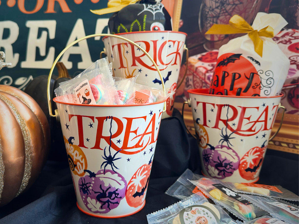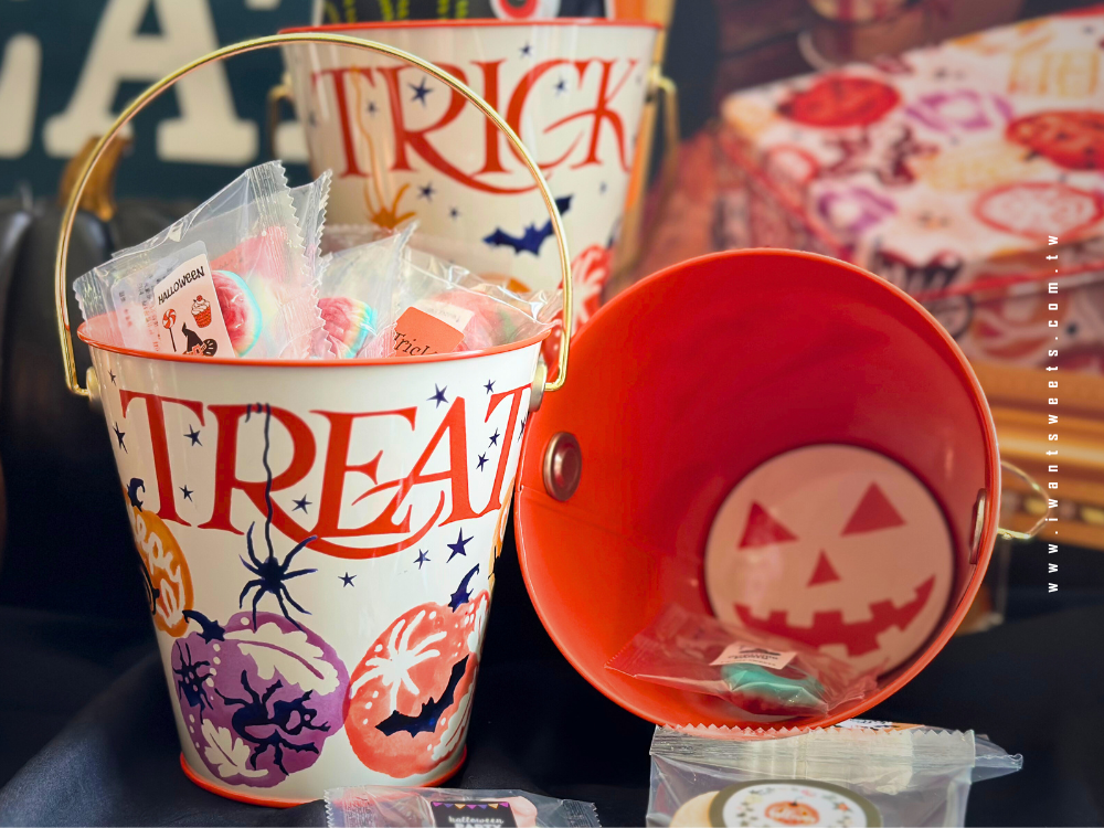 Emma 萬聖提籃糖果組採用 Emma Bridgewater 獨特的風格,印上了活潑可愛的南瓜燈、神秘的黑貓與蜘蛛網等經典萬聖節圖案,而提籃本身則由耐用的馬口鐵製成並配備了堅固的金屬提把,非常適合孩子們在萬聖節當天提著它出門進行 Trick or Treat 的活動。