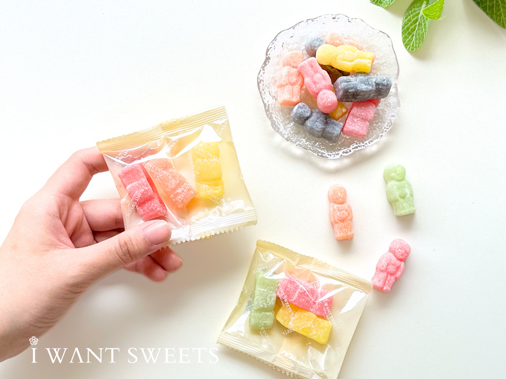 每一顆 Jelly Baby 都擁有圓潤可愛的身形與自然果汁風味,常見口味包含檸檬、橘子、黑加侖、覆盆子等,外層裹上薄薄糖粉,入口即化、Q彈不黏牙,香甜中帶著微酸,令人百吃不厭。