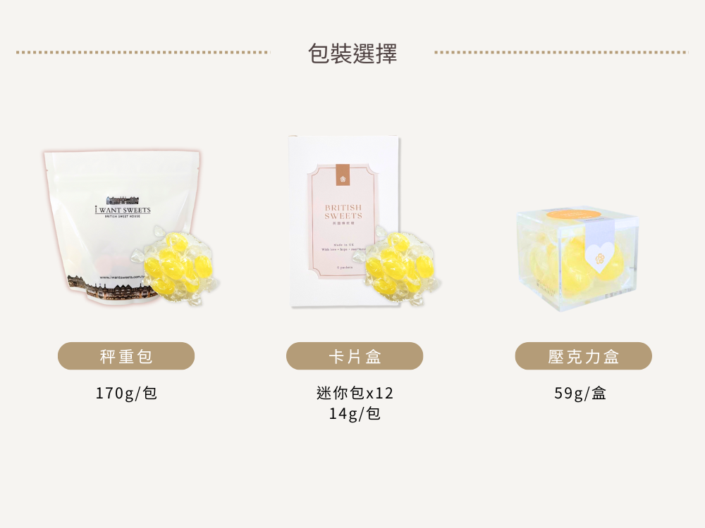 Sherbet Lemons 是來自英國的經典懷舊糖果,以鮮黃色澤和強烈的檸檬香氣著稱。外層是硬質透明的檸檬糖殼,包裹著微酸微甜、細緻綿密的檸檬汽泡雪寶粉(Sherbet Powder),咬開瞬間酸香炸裂,令人驚喜不已!