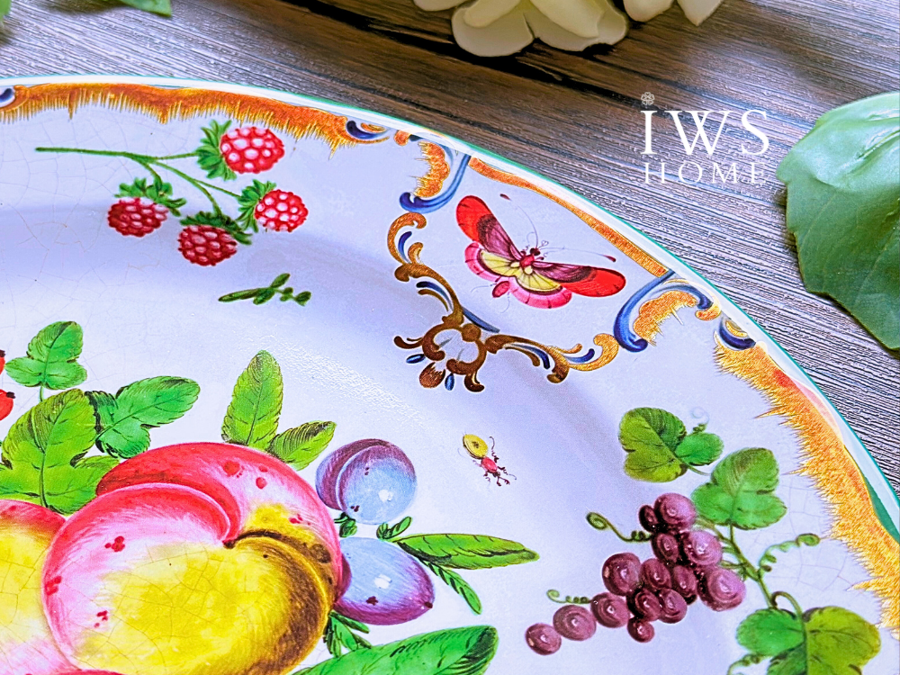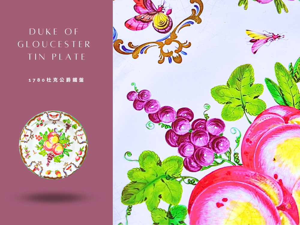 「1780杜克公爵鐵盤」靈感源自英國格洛斯特公爵於十八世紀末所擁有的珍稀瓷器收藏,重現當時貴族餐具的典雅風範。設計取材自皇家收藏館藏的瓷盤圖樣,細緻描繪金色飾邊與古典花卉,展現喬治時代的華麗工藝與宮廷氣息。以堅固馬口鐵製成,兼具復古外觀與實用功能,無論用於下午茶點心、節慶佈置或居家展示,皆能流露英式貴族的雍容與格調。