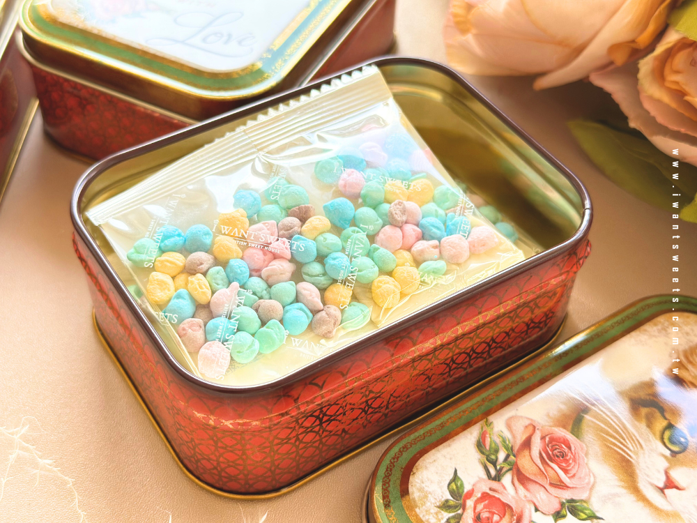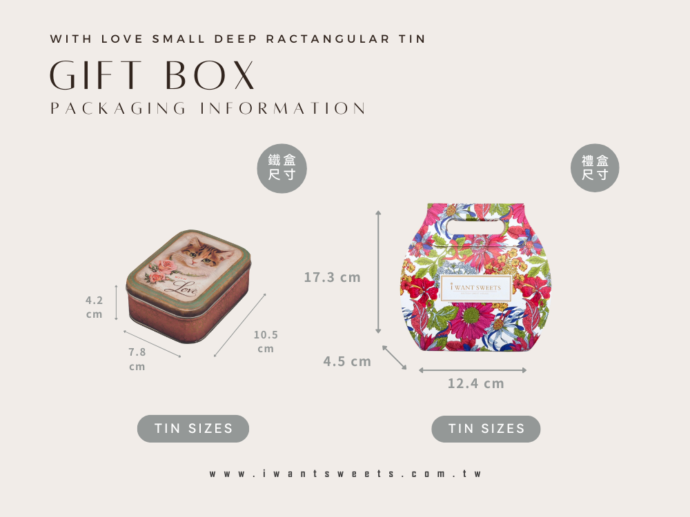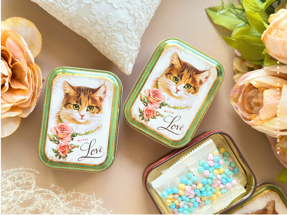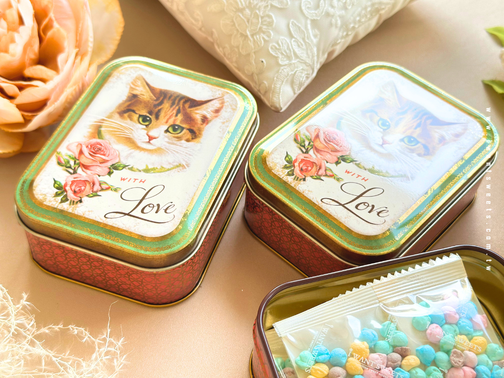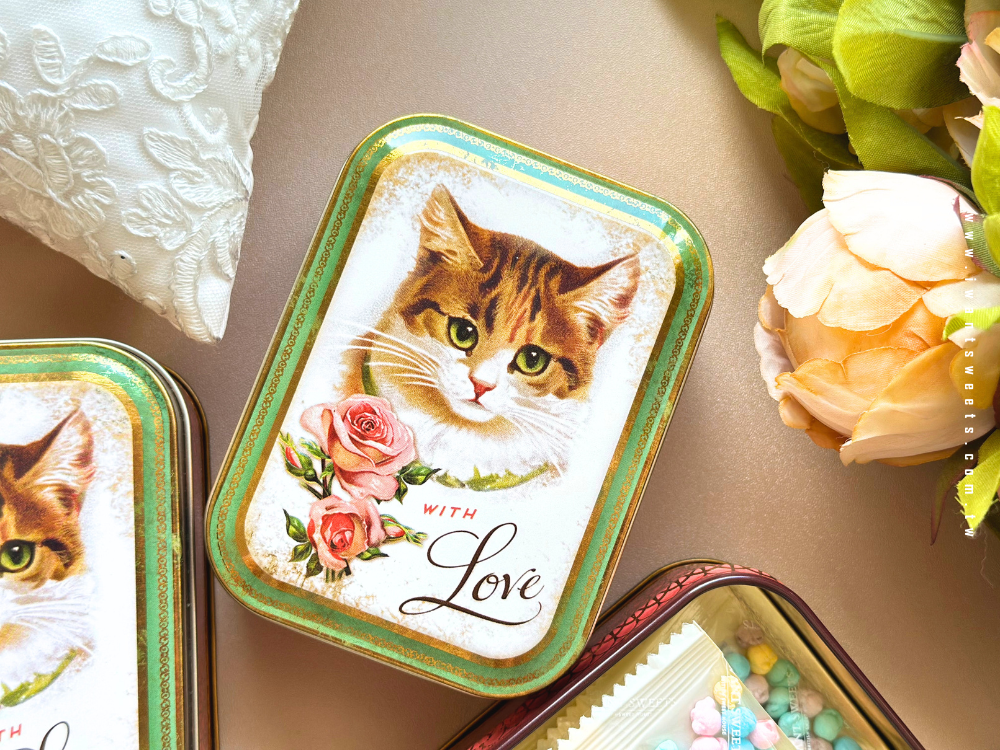 可愛的貓咪插畫搭配溫馨的「With Love」字樣,將感謝化作最甜蜜的禮物。鐵盒內盛裝著香甜的英國糖果,讓每一口都傳遞真心與祝福。