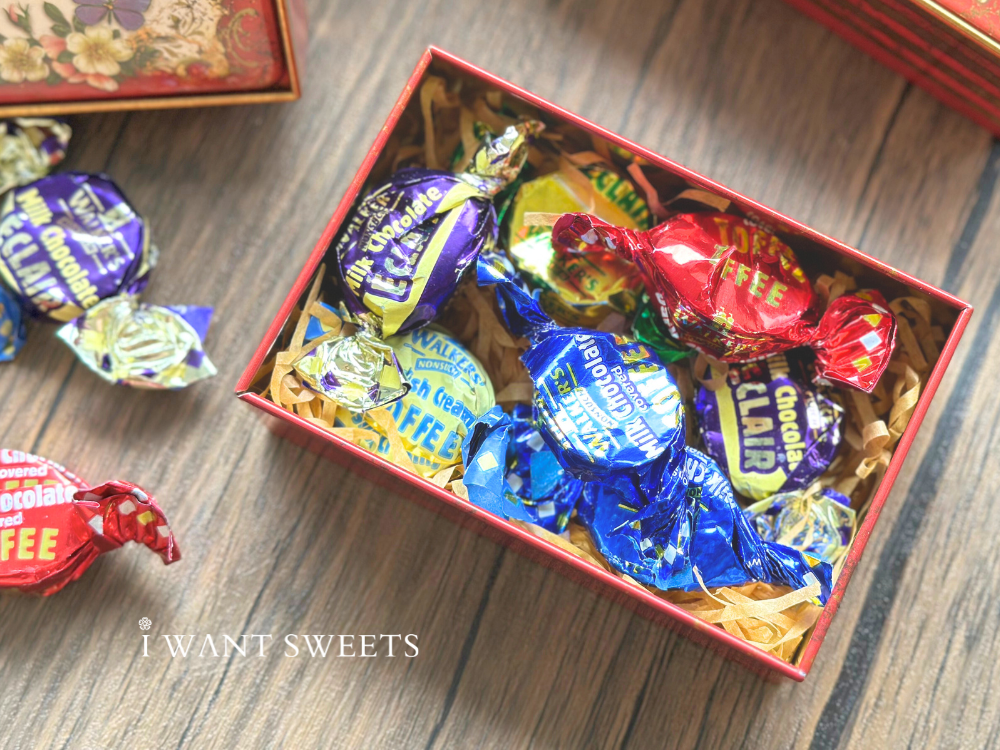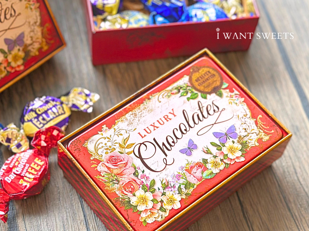 復古紅色長方糖果禮盒以懷舊英倫風為靈感,亮麗的紅色鐵盒搭配經典金邊設計,散發濃厚復古氣息。內含英國精選糖果,甜蜜而不失優雅。小巧方盒造型方便隨身攜帶或收藏,無論作為節慶贈禮、交換小禮或辦公桌擺飾,都能為日常增添一抹溫暖與質感。