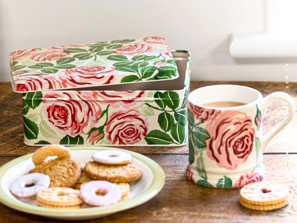 這款鐵盒以盛放的玫瑰為主角,展現出 Emma Bridgewater 經典的英式花卉美學。