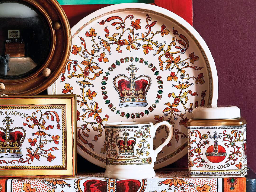 Emma Bridgewater 特別為皇室慶典打造的 Royal Celebration 系列,以皇冠、寶石、緞帶與金銀手繪字樣組成一場視覺盛宴,散發典雅又歡欣的氛圍。