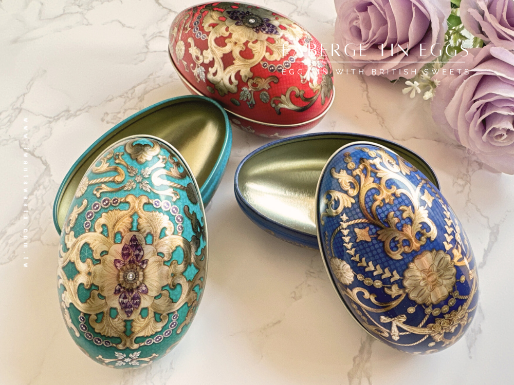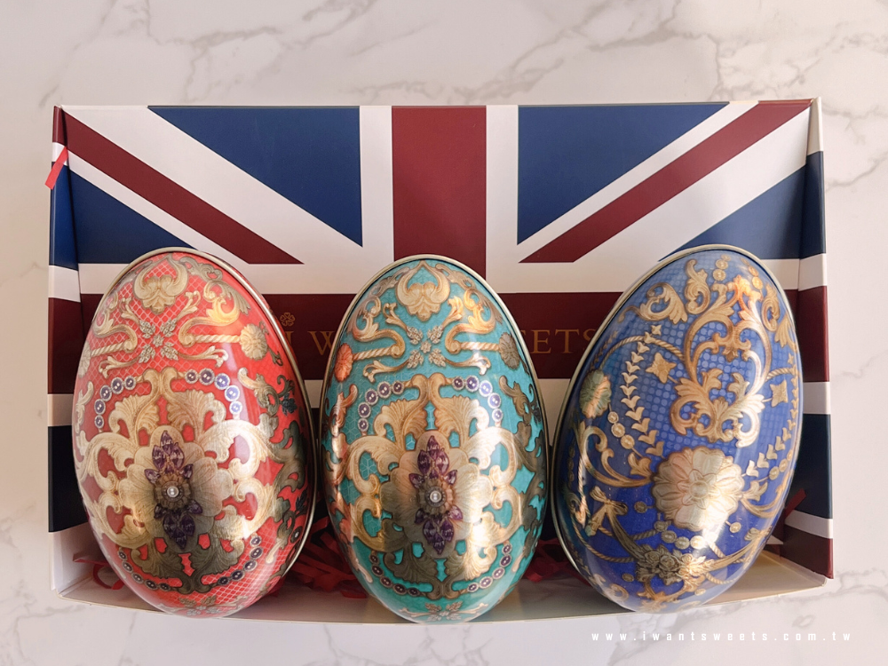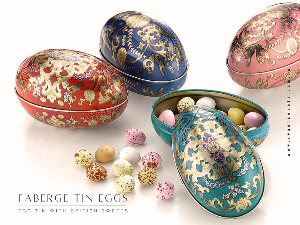 復古俄羅斯風格的蛋型鐵盒,以繽紛圖樣與優雅造型吸引目光,內藏英國原裝進口糖果,甜蜜口感與節慶氛圍一次擁有。