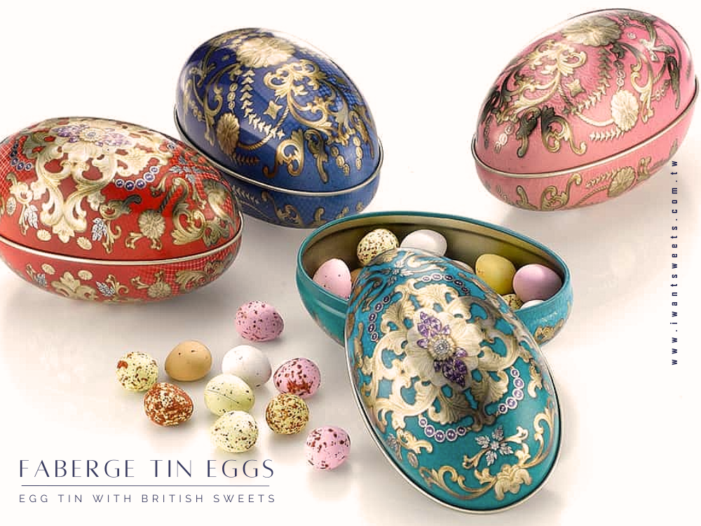 復古俄羅斯風格的蛋型鐵盒,以繽紛圖樣與優雅造型吸引目光,內藏英國原裝進口糖果,甜蜜口感與節慶氛圍一次擁有。
