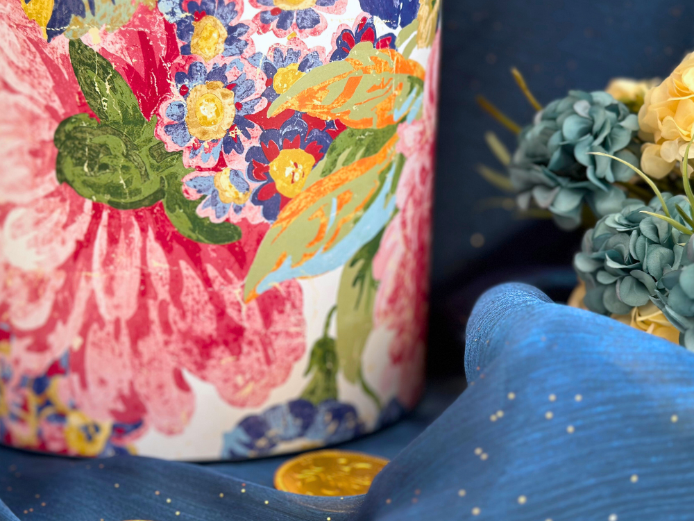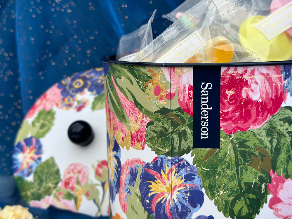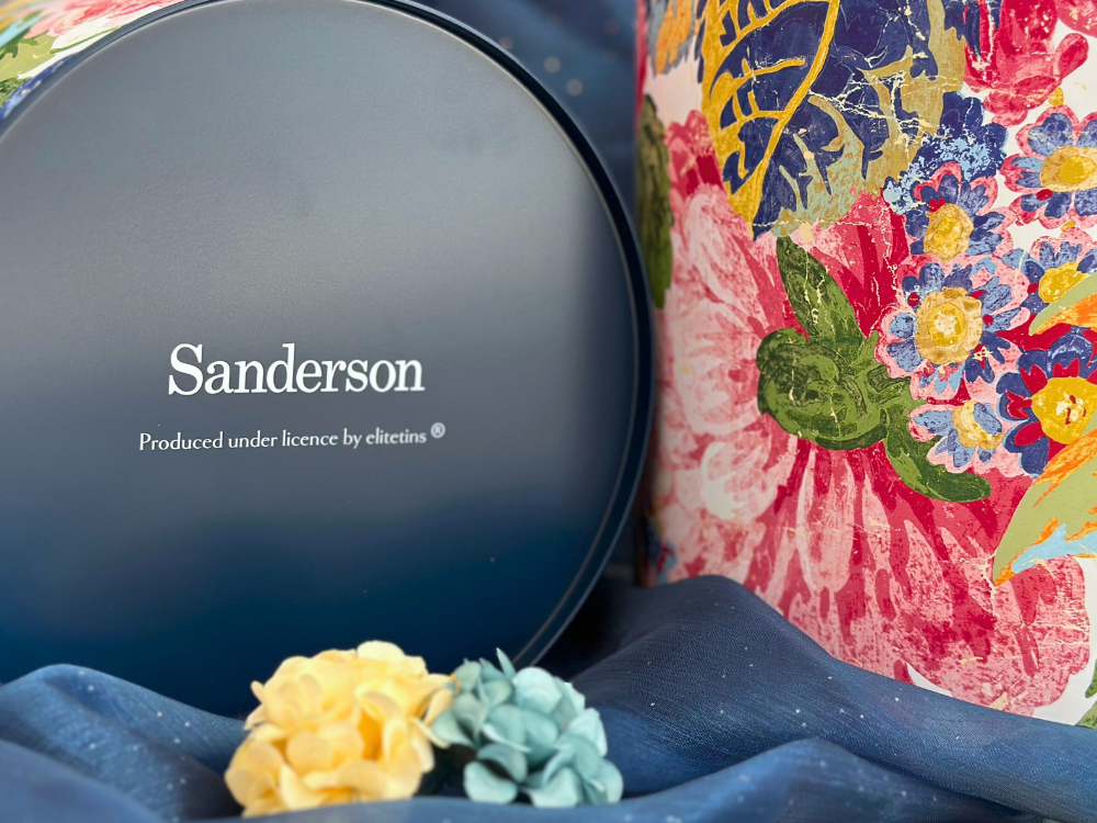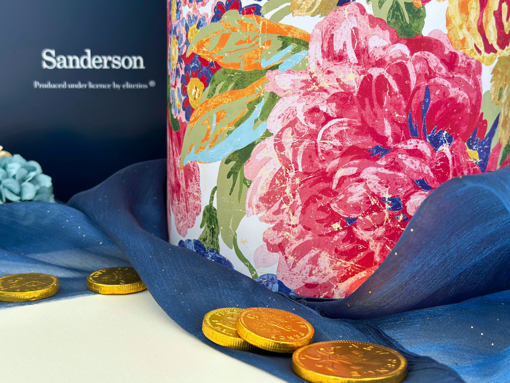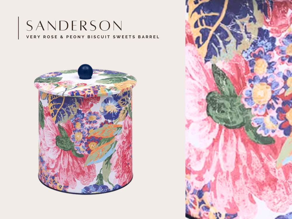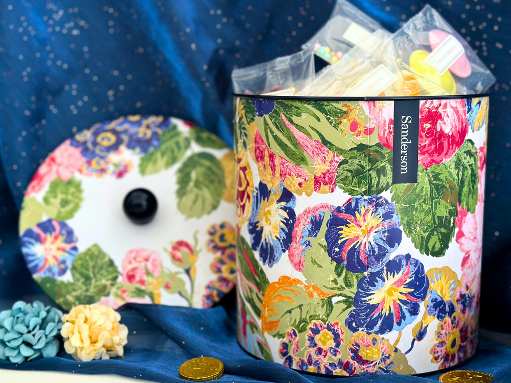 來自英國百年家飾品牌 Sanderson 的經典花卉設計,以盛開的玫瑰與牡丹為主題,展現在這款糖果圓筒上,優雅的色彩與筆觸如同走進英式花園午後的柔光中。