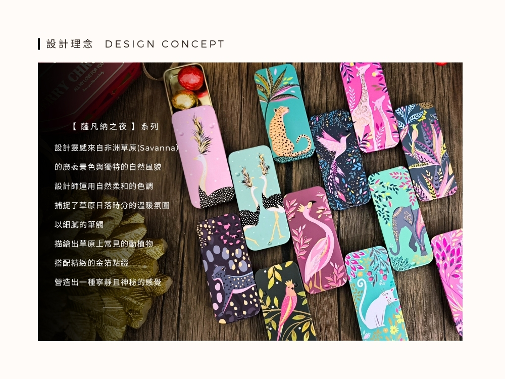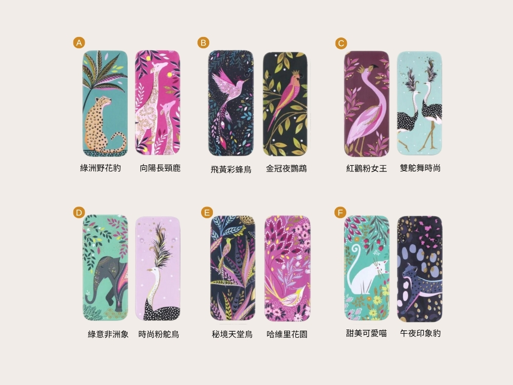 來自英國設計師 Sara Miller 的經典圖騰 — 薩凡納系列,以迷人的金箔細節與異國動物剪影,勾勒出一場色彩斑斕的旅程。