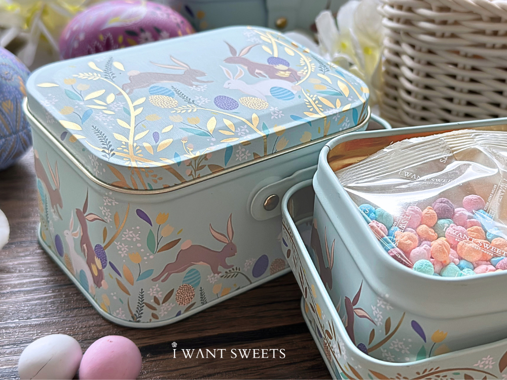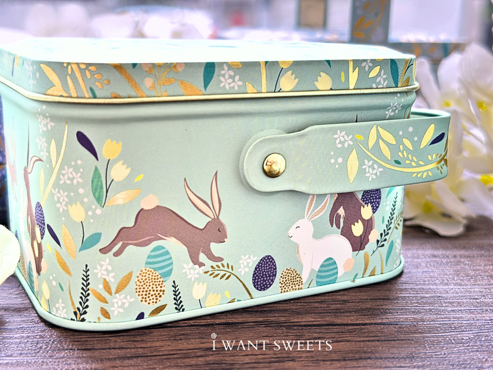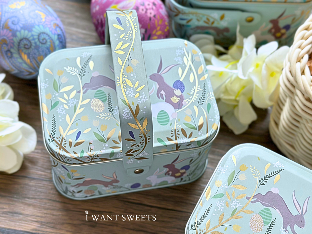 「Sara Miller 快樂萌兔手提糖果禮盒」以春日的歡樂氣息為靈感,展現品牌一貫的細膩與華麗。盒身描繪嬉戲的萌兔與繽紛花葉,點綴金箔細節,洋溢節慶的明亮活力。手提籃造型既可愛又實用,內含英國經典糖果,象徵甜蜜與祝福。無論作為復活節禮品、派對擺飾或收藏展示,都能為節日時光增添一份輕盈愉悅的英倫魅力。