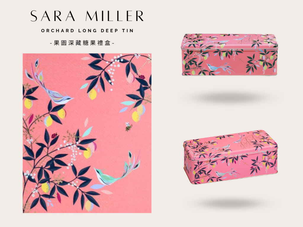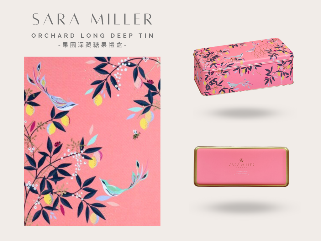 這款長方深盒禮盒由倫敦設計師品牌 Sara Miller 操刀設計,以優雅金箔點綴的果園風景為主題:柑橘、石榴、繁花盛開,林間飛鳥悠然其間,猶如走進英國鄉村午後的私密花園。色彩豐富而不失雅致,是糖果禮盒,更是一件值得珍藏的美學擺飾。
