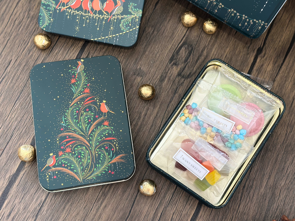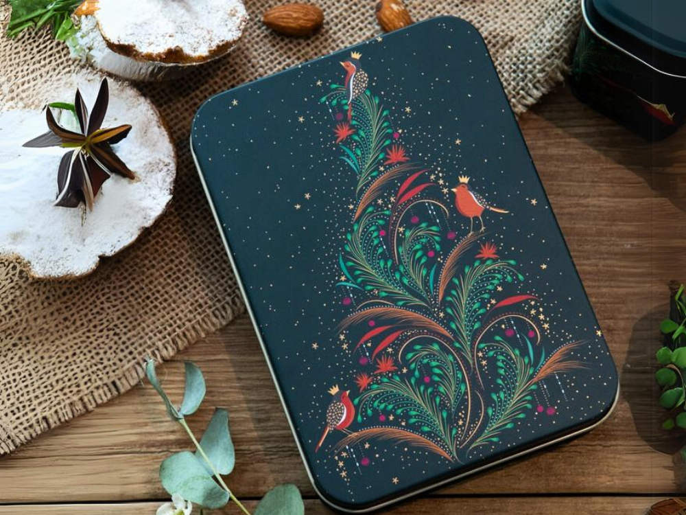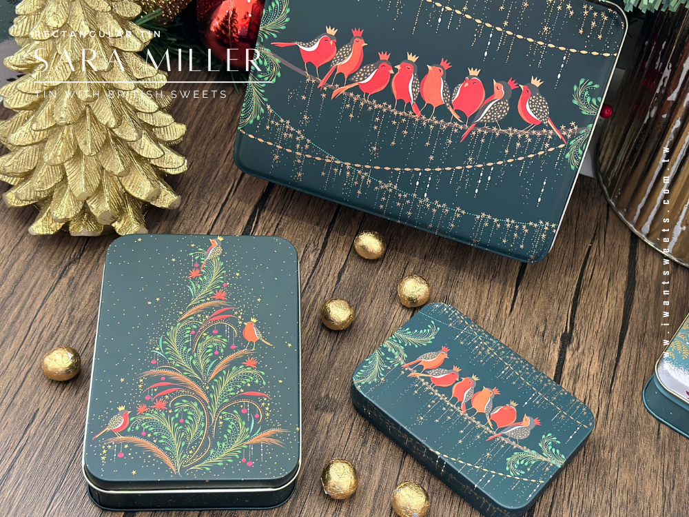 充滿節慶氣息的 Sara Miller 聖誕樹知更鳥長方糖果禮盒,以金箔細節描繪冬日枝頭上的紅胸知更鳥,展現英倫聖誕的溫暖氛圍。內含精選英國糖果,是兼具優雅與甜蜜的小禮,為節日時光增添閃耀祝福。