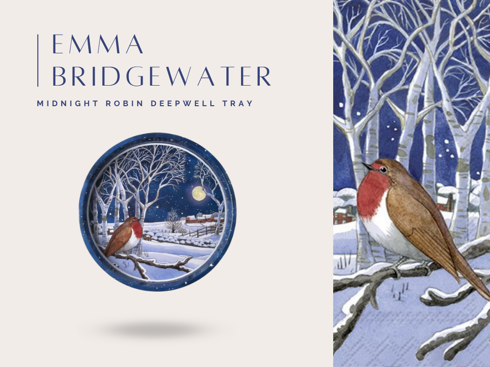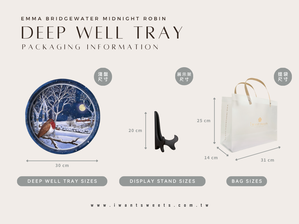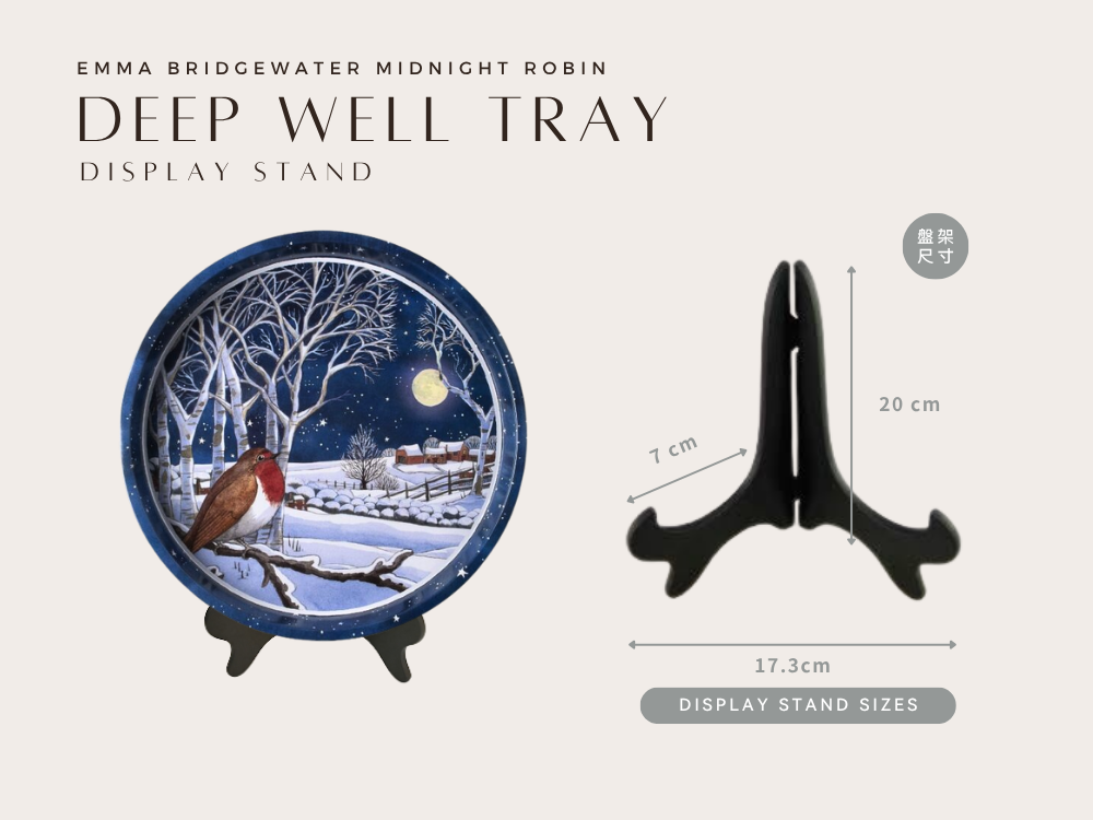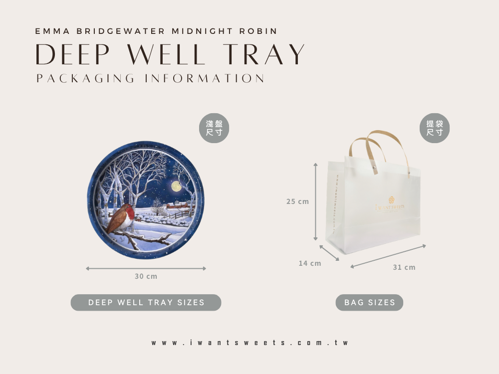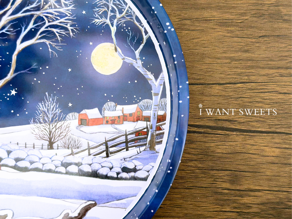 極致冬夜氛圍在這款鐵盤中躍然呈現:夜空深藍如絲,雪地銀白細緻綴滿畫面,一隻胸前鮮紅的知更鳥靜立枝頭。柔和筆觸與復古英倫配色交錯,勾勒出寧靜且富詩意的節慶場景,為空間增添一抹夢幻冬日美。