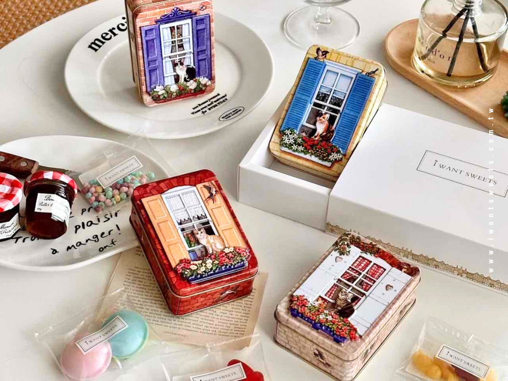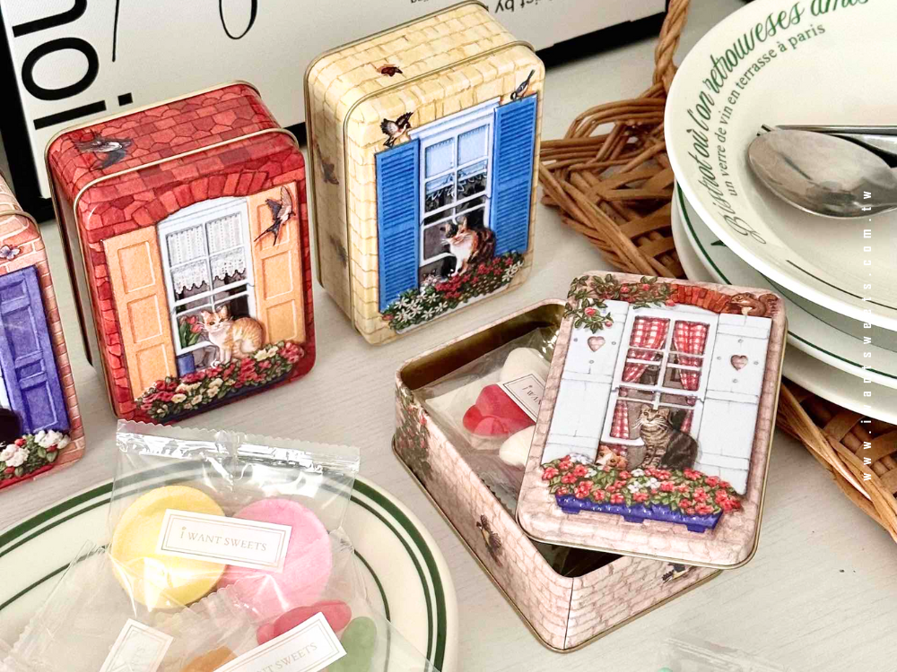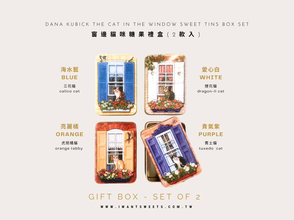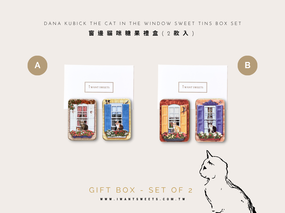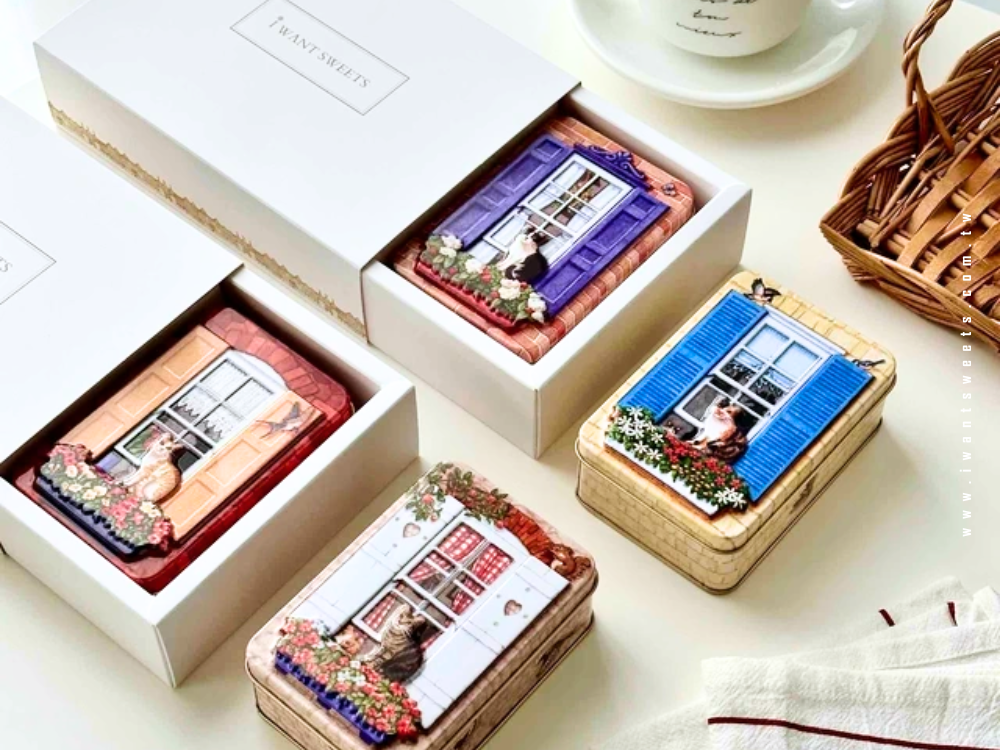 這款鐵盒設計以窗邊凝望的貓咪為主角,彷彿在午後陽光中靜靜等待主人的歸來,滿溢英倫生活的詩意情懷。